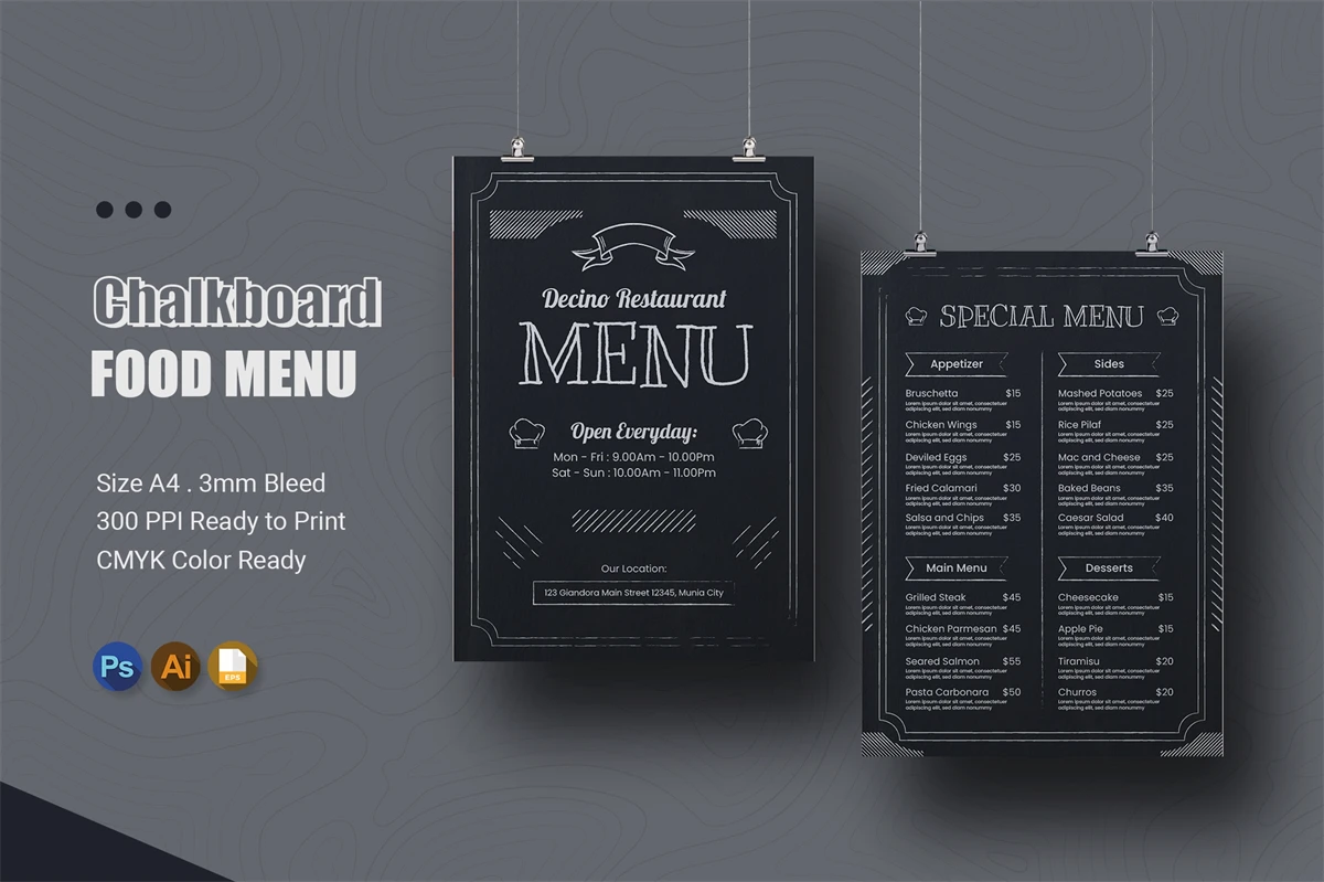 This Menu is great for displaying your restaurant menu in an eye pleasing way. Attracting customers with an easy-to-read restaurant menu certainly makes closing easier, right? easily editable according to your needs, this restaurant menu is perfect for promos, cafes, hotels, resort shops online etc.