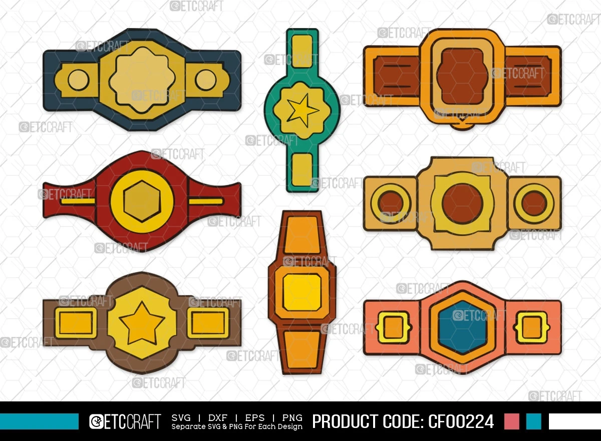 Celebrate the spirit of victory and achievement with the Championship Belt Clipart Boxing Belt Icon SVG Cut File Bundle. Bring your creative visions to life, honor champions, and make your projects shine. Start creating your winning designs today!