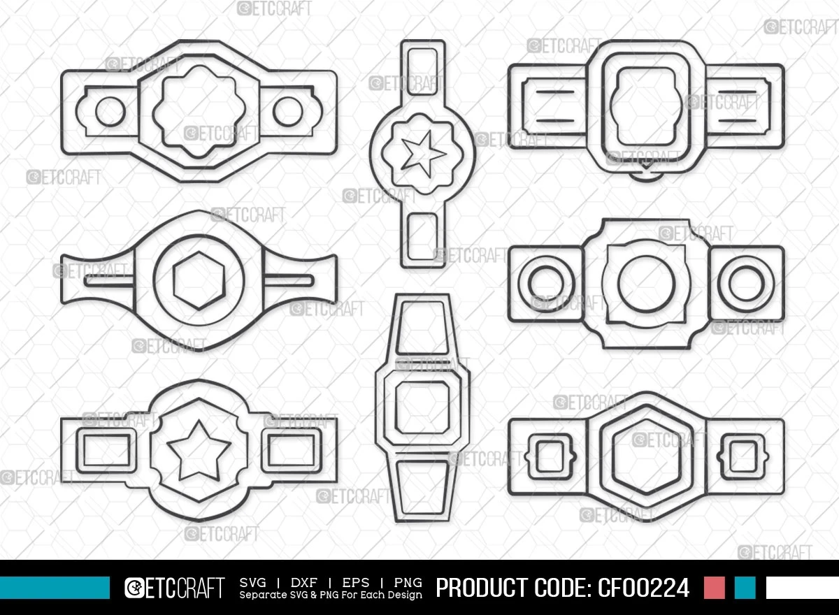 Celebrate success and victory in your projects with the Championship Belt Outline Boxing Belt Icon SVG Cut File Bundle. Bring your creative ideas to life, honor champions, and make your designs stand out. Start crafting your winning projects today!