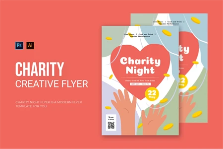 Charity Night - Flyer. This Flyer template is designed for your company's business needs. very clean and elegant, and also easily edited and adjusted to your liking