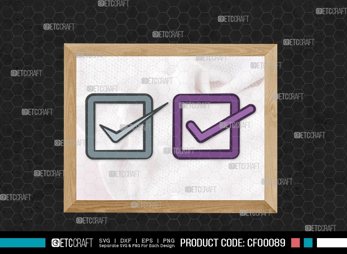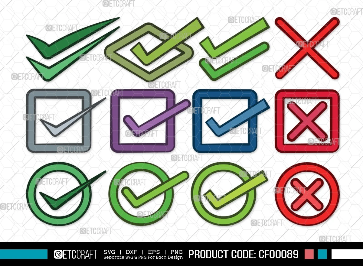 Discover endless possibilities with our Check Mark Clipart Tick & Cross Box SVG Cut File Bundle. This collection features meticulously designed clipart of check marks, tick symbols, and cross marks, perfect for adding a visual touch to your to-do lists, charts, and designs.