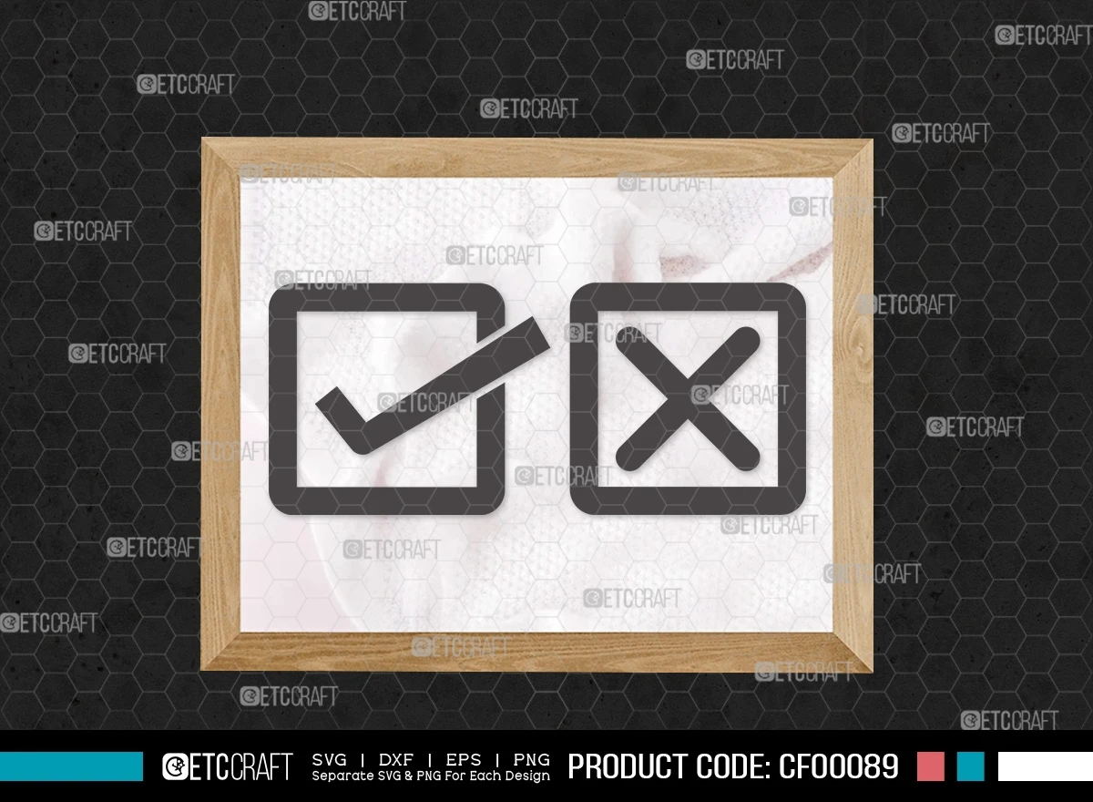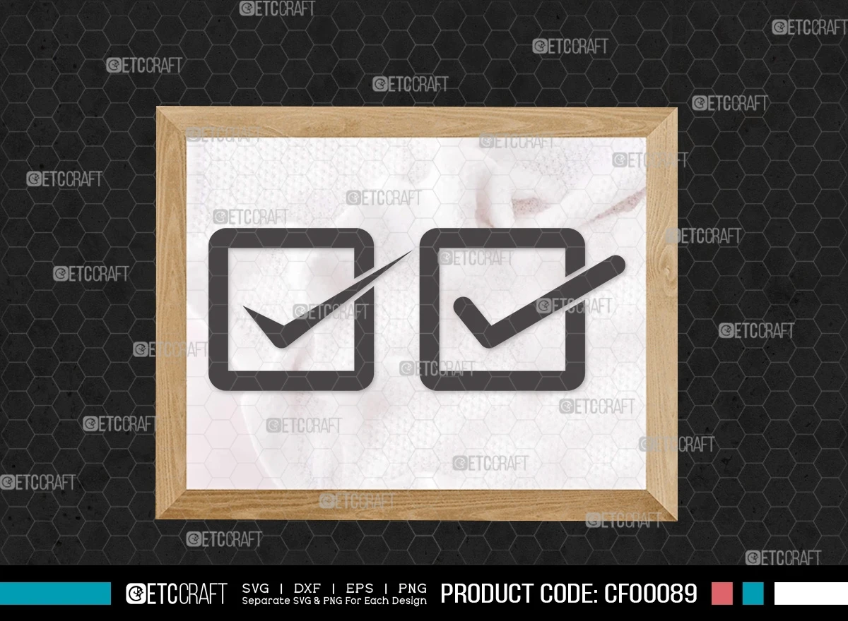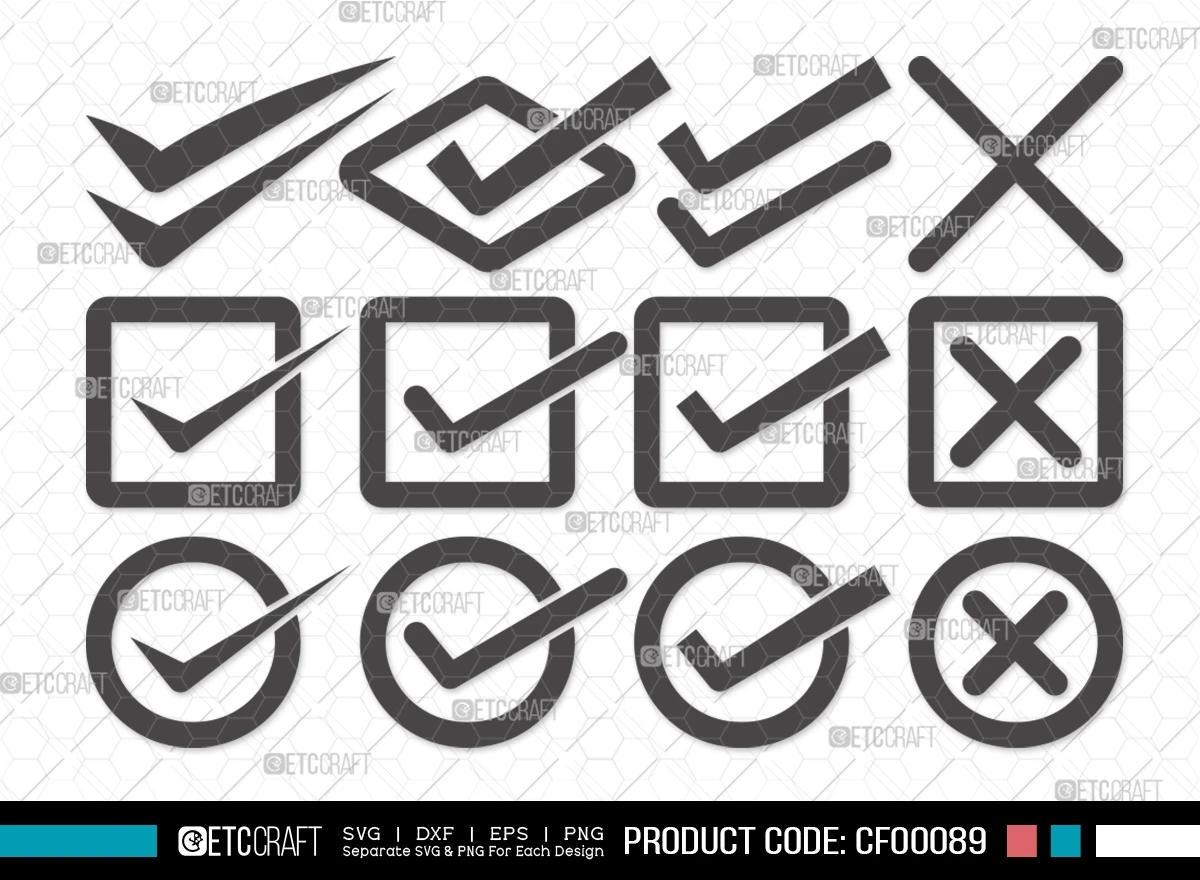 Explore a world of creativity with our Check Mark Silhouette Tick & Cross Box SVG Cut File Bundle. This collection features finely crafted clipart of check marks, ticks, and crosses in sleek and modern silhouettes, perfect for adding a contemporary touch to your projects.