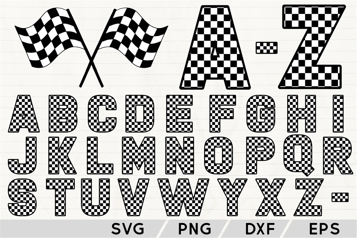 Checkered Alphabet Svg, Checkered,Racing Flag,Commercial Use