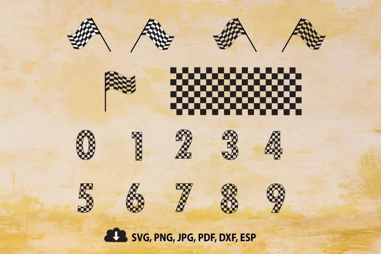 Checkered Numbers, Racing Checkered Pattern Numbers 0 to 9, Birthday Party Numbers Svg, Racing Flag Clipart, Cut file, Cricut