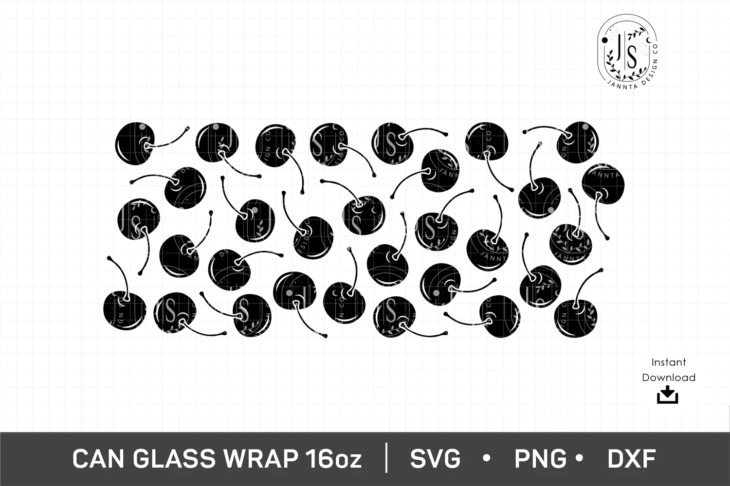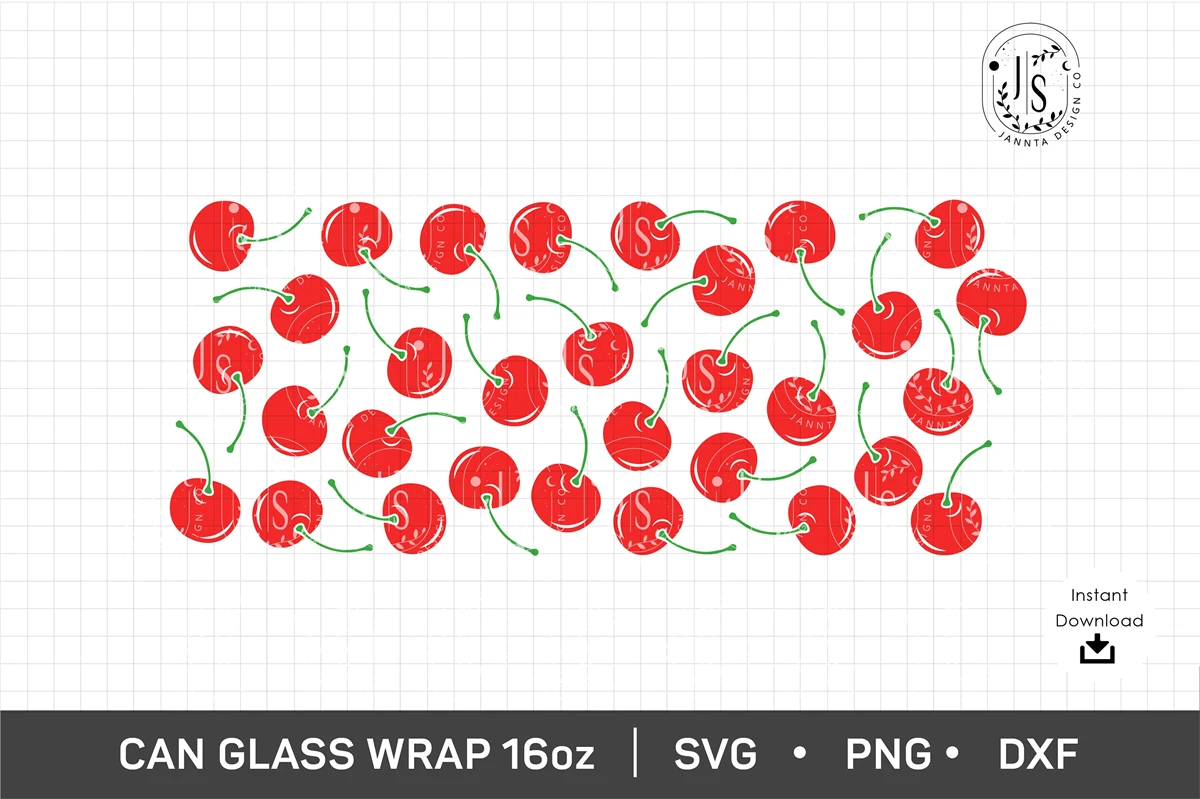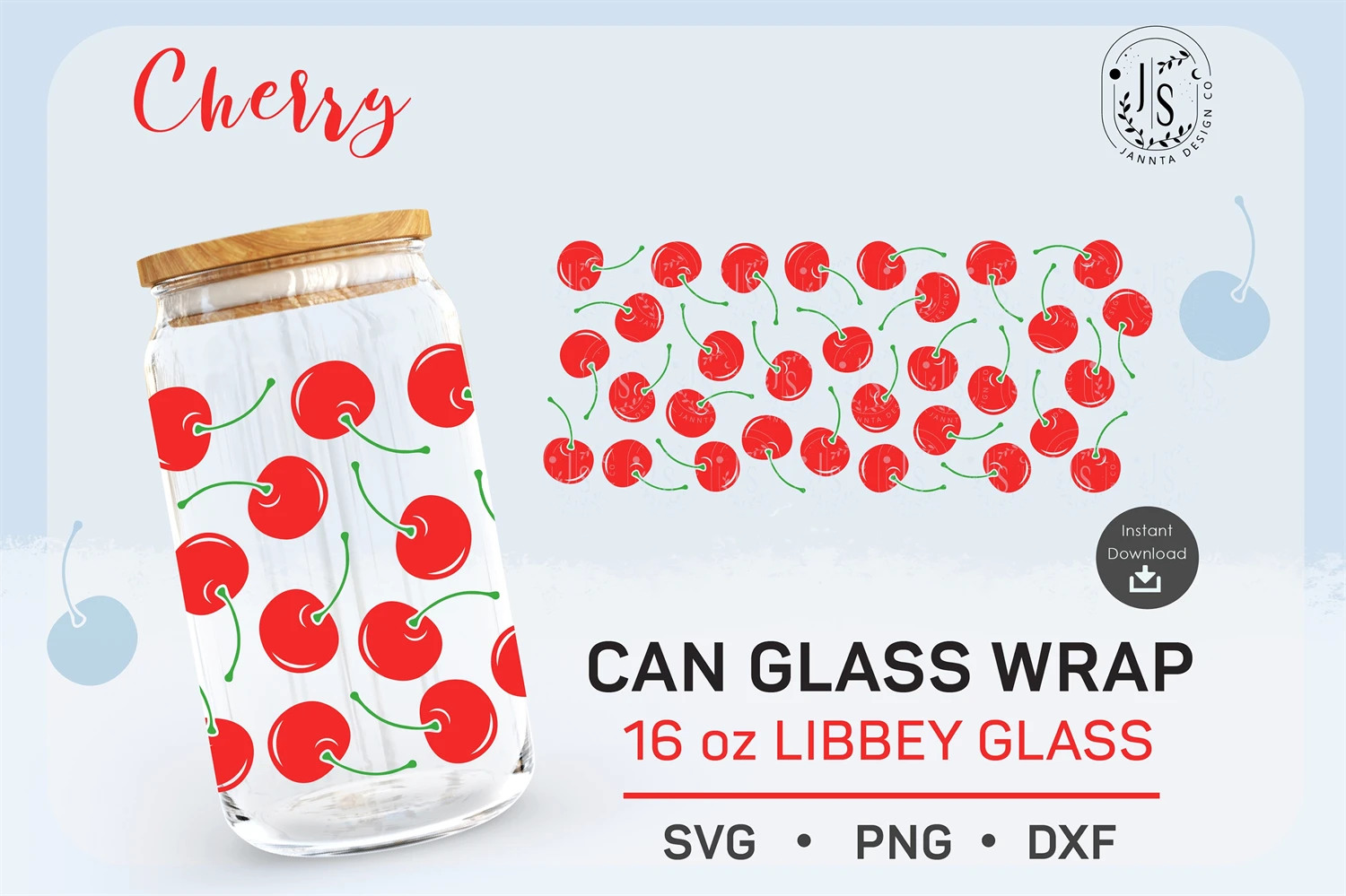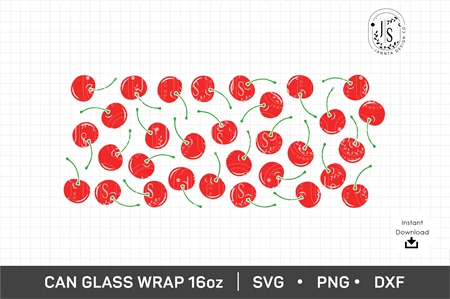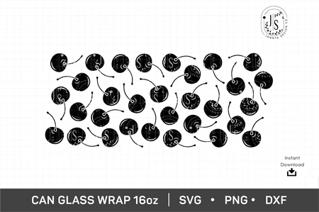 Cherry Berry Fruit SVG, Fruits PNG, Can Glass Wrap SVG 16oz, Full Wrap for Can Glass, Seamless Wraps, PNG Digital Download Template
