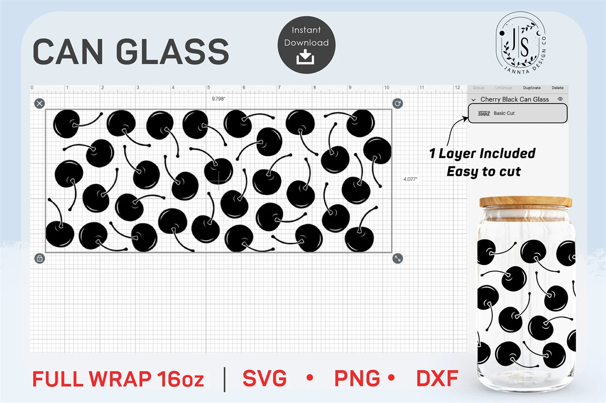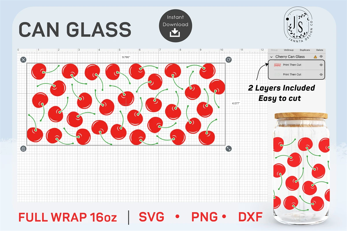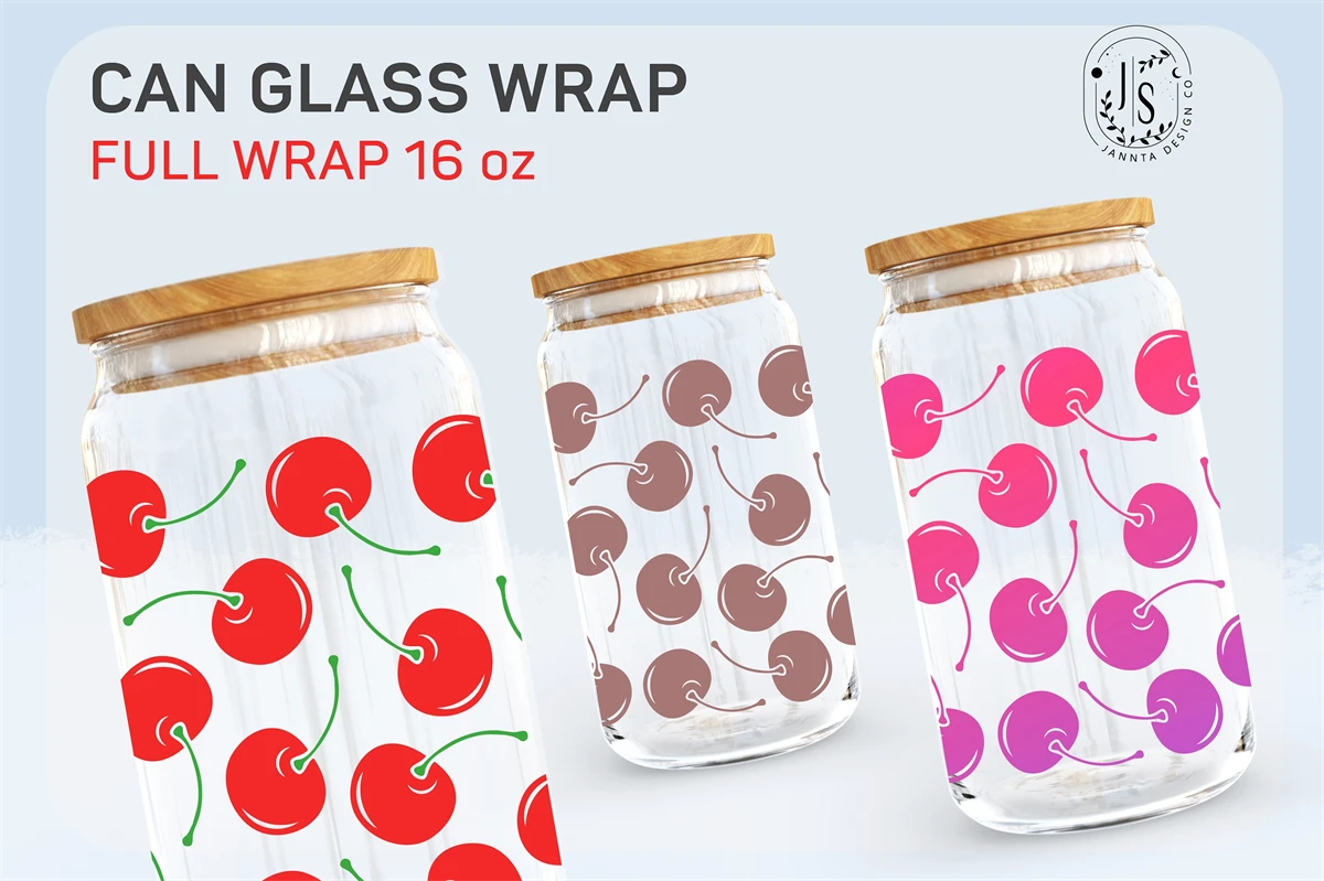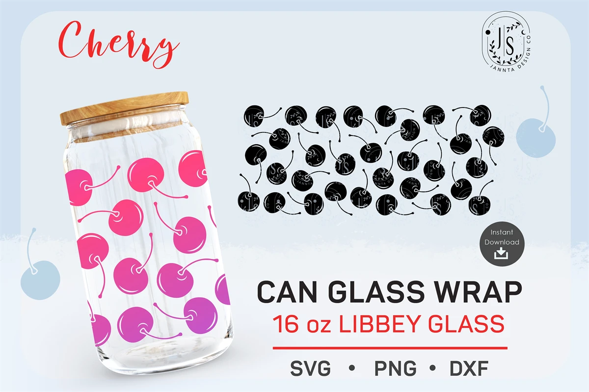 Cherry Berry Fruit SVG, Fruits PNG, Can Glass Wrap SVG 16oz, Full Wrap for Can Glass, Seamless Wraps, PNG Digital Download Template