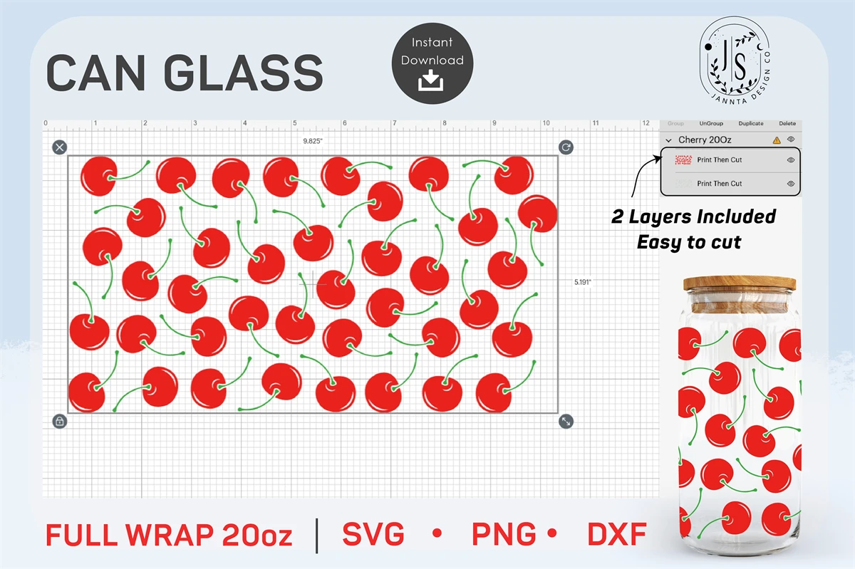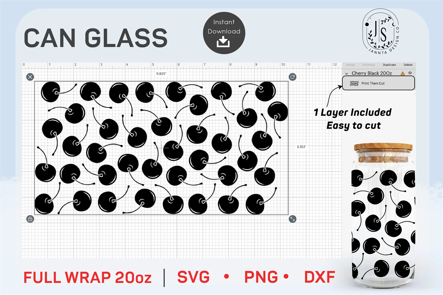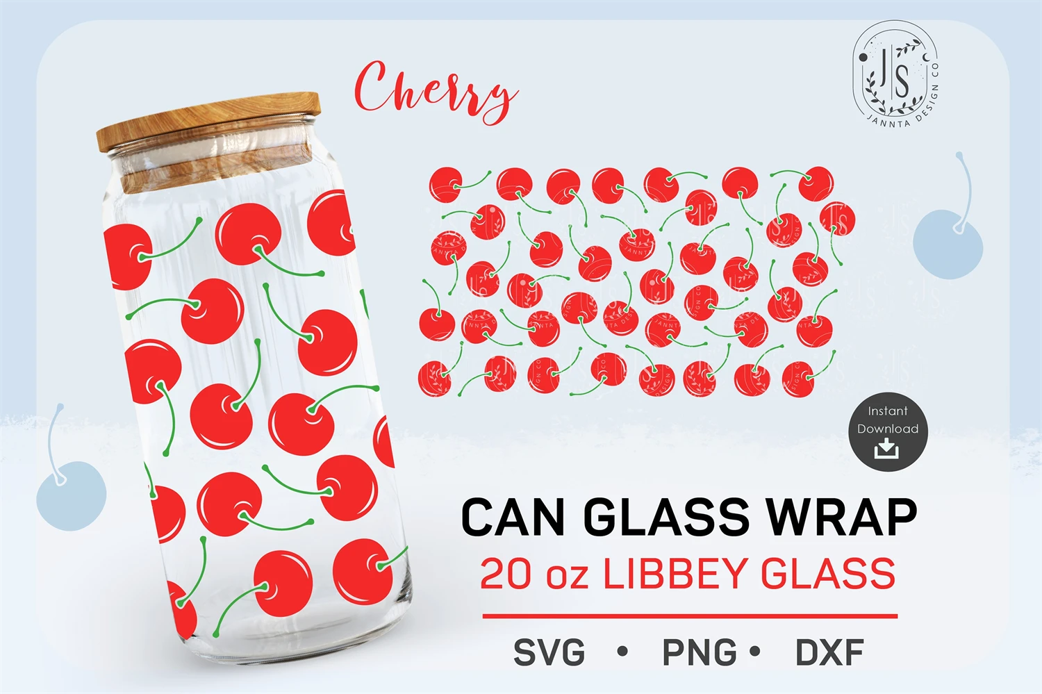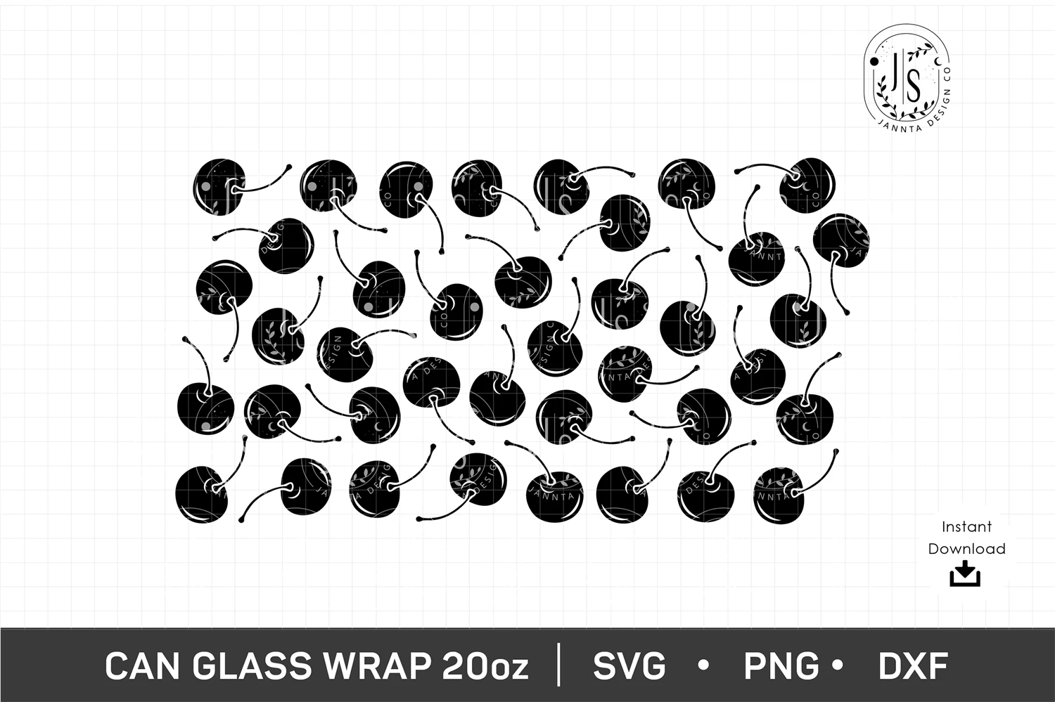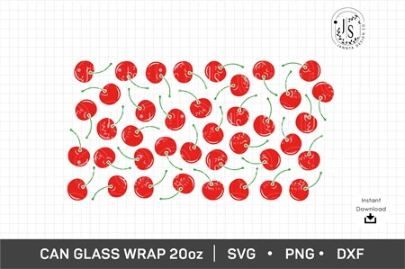 Cherry Berry Fruit SVG, Fruits PNG, Can Glass Wrap SVG 20oz, Full Wrap for Can Glass, Seamless Wraps, PNG Digital Download Template