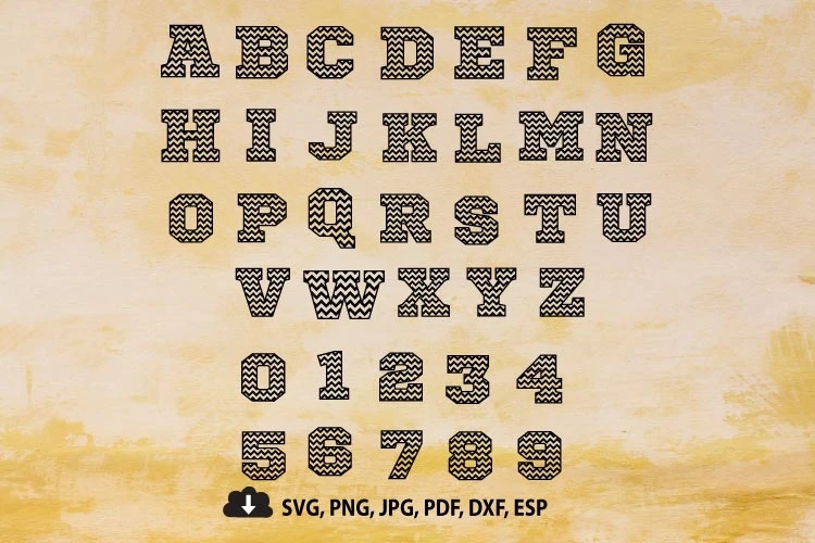 Chevron Alphabet and Numbers, Chevron Font, Chevron Alphabet, Chevron Letters Clipart, Chevron Letters, Chevron Monogram Cricut