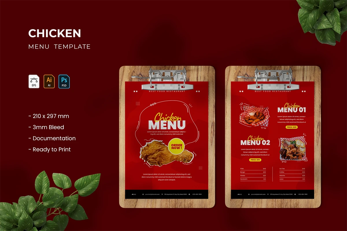 Menu Restaurant Template is a menu template for people who sell, business, or run a food-related business. The layout makes it easy to find the menu you want. Too many choices can make customers feel overwhelmed, so its better to limit the number of choices, colors, and other design elements so that customers can easily scan and order items.