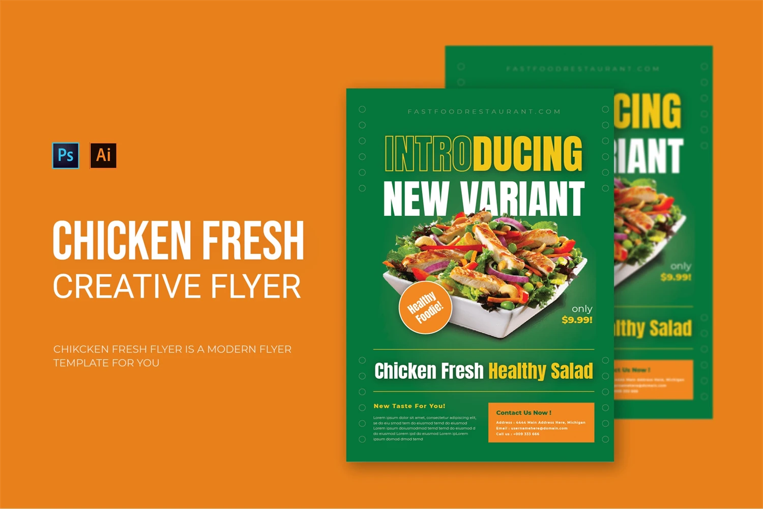 Chicken Fresh - Flyer. This Flyer template is designed for your company's business needs. very clean and elegant, and also easily edited and adjusted to your liking