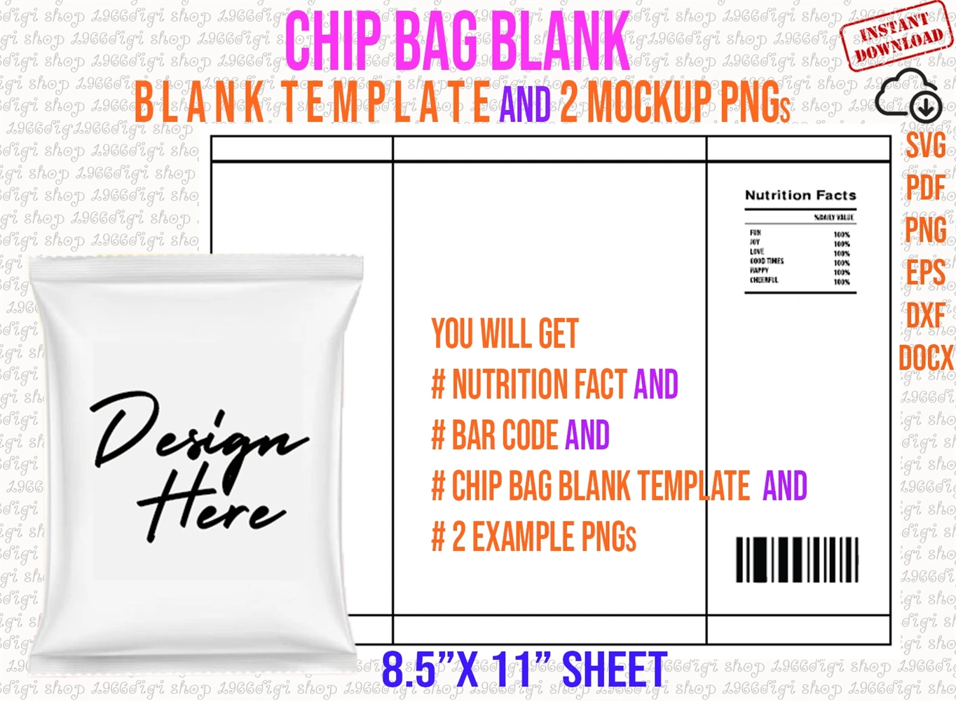 1 ZIP FILE (3 SVG(Nutrition Face Svg and Barcode Svg and Blank, 1 Pdf, 1 Dxf, 1 Docx, 1 Eps, 3 Png(2 Pngs and 1 Blank Png) and 8.5"x11" Sheet)