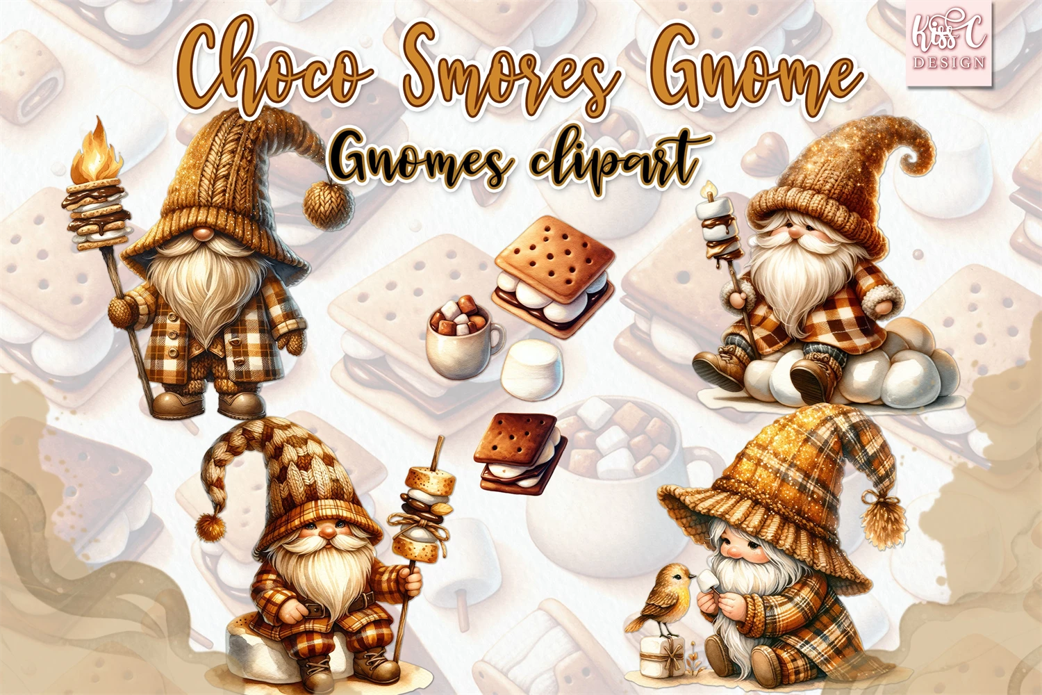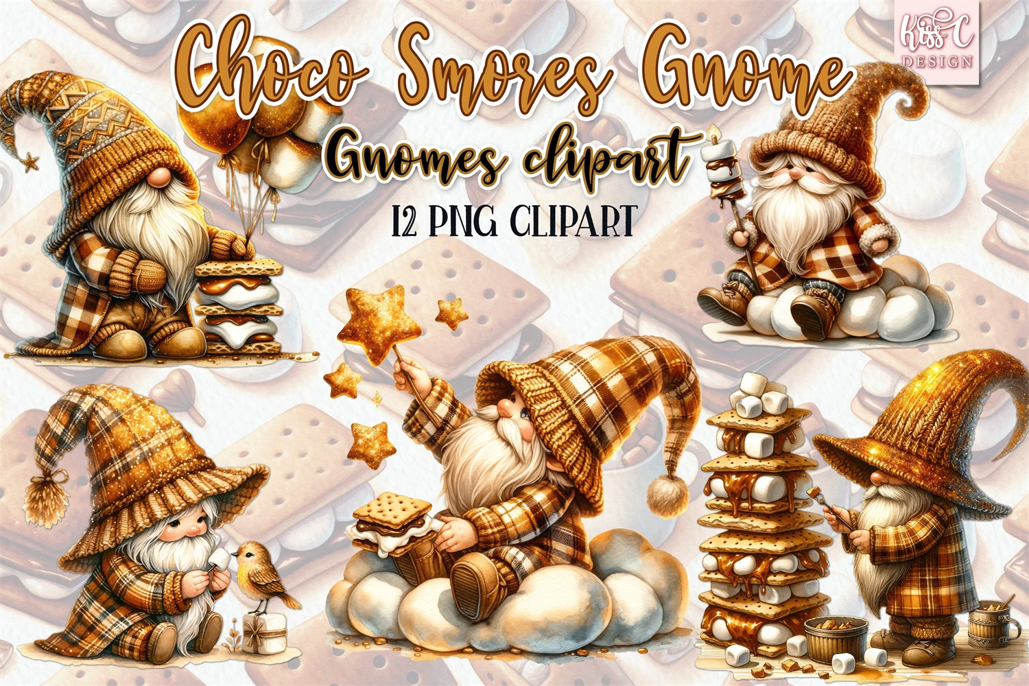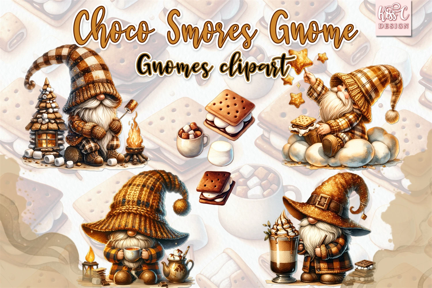 Smore Gnomes Watercolor Clipart. Printable Smore Gnome Illustrations.