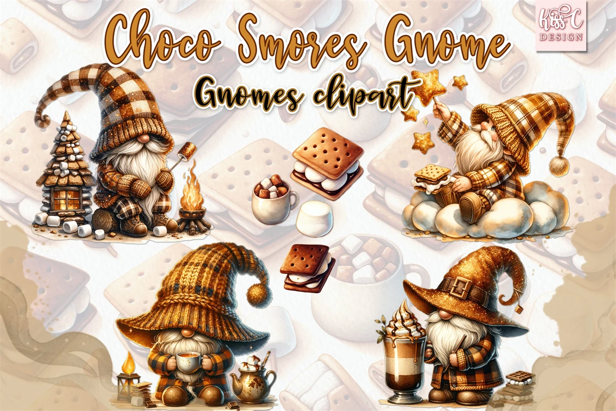 Create your DIY invitations, greeting cards, and more with our Smore Gnomes Watercolor Clipart Collection.