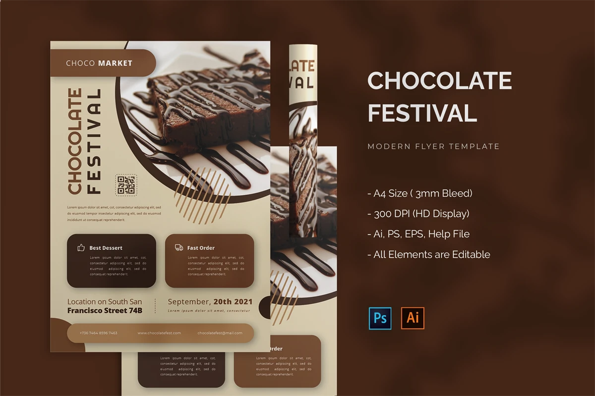 Chocolate Festival - Flyer. This Flyer template is designed for your company's business needs. very clean and elegant, and also easily edited and adjusted to your liking