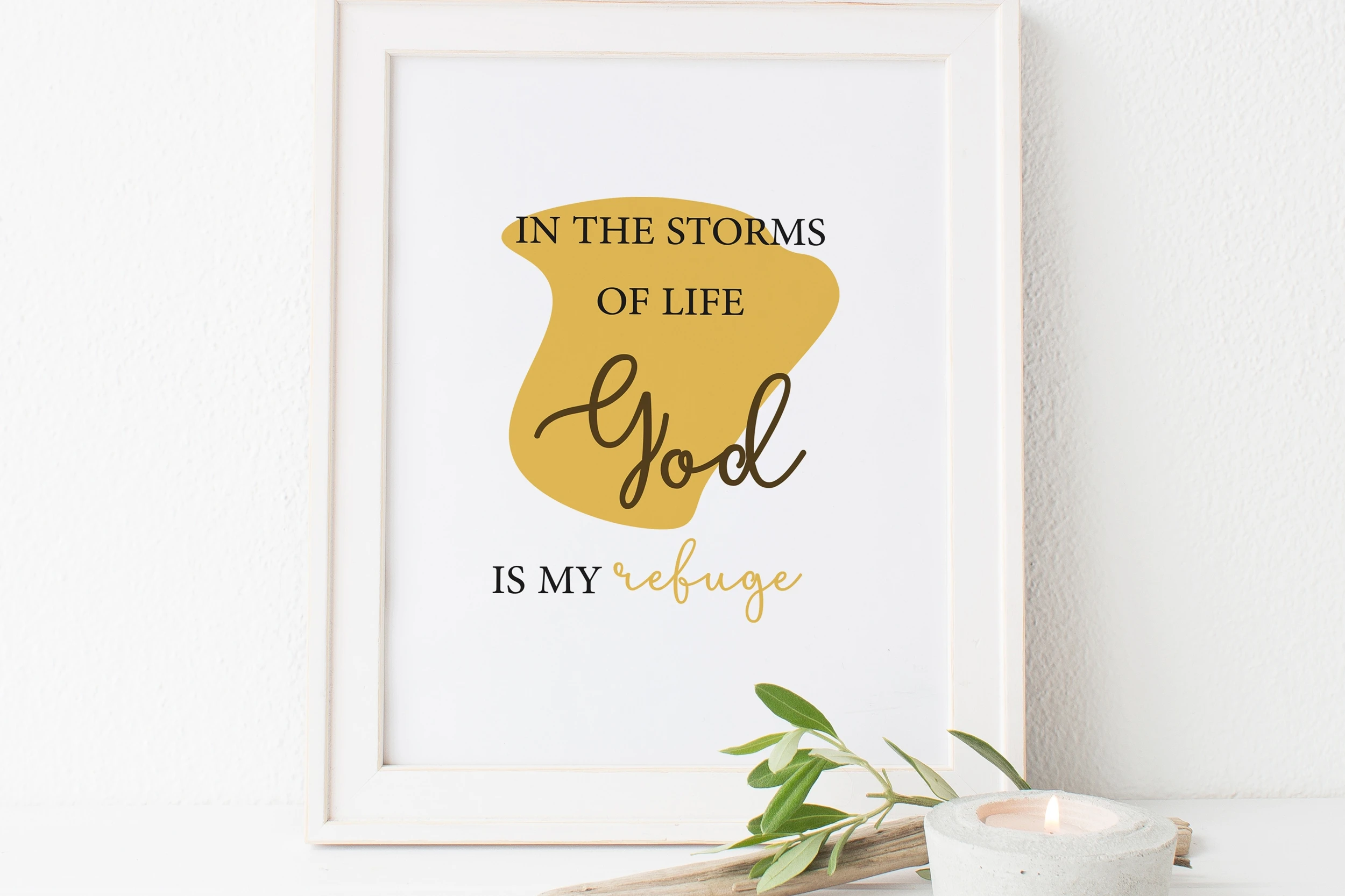 Christian Wall Art, Christian Wall Decor, Christian Quote, God is My Refuge, Baptism Gift, Digital Download