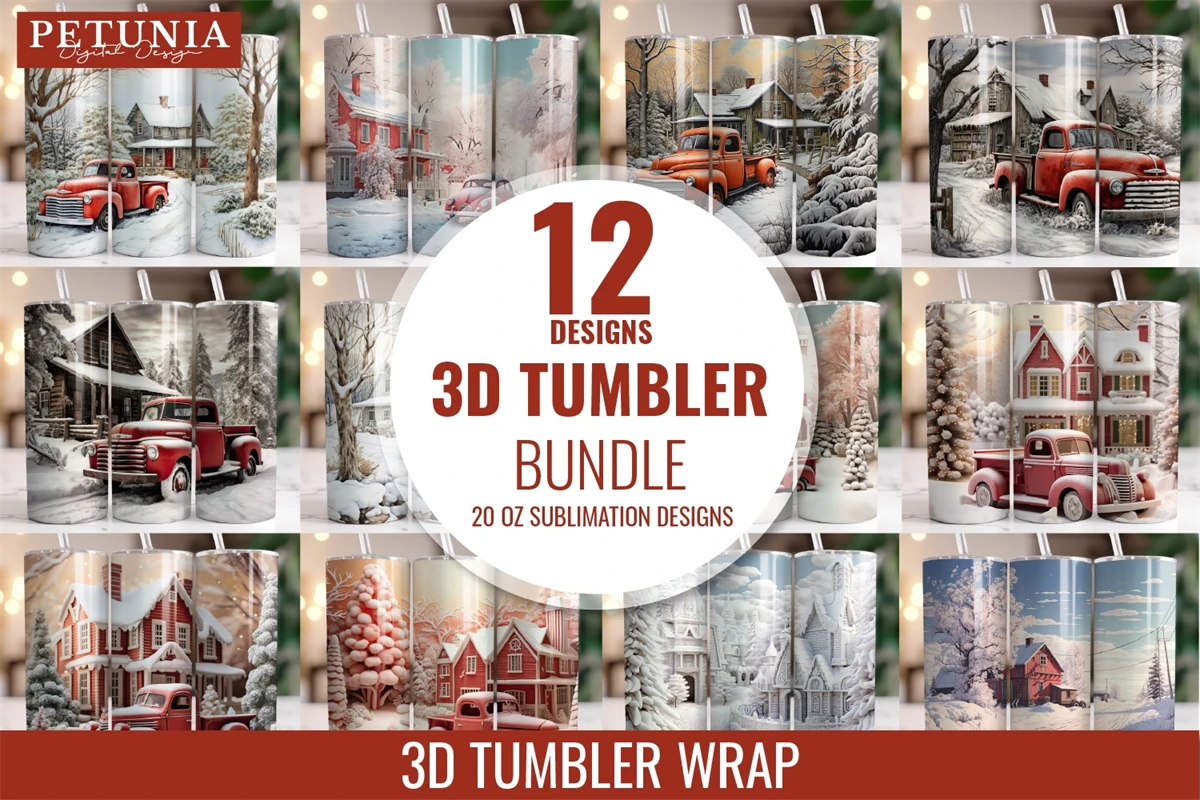 Christmas 3D Tumbler Designs, 3D Tumbler Sublimation Wrap