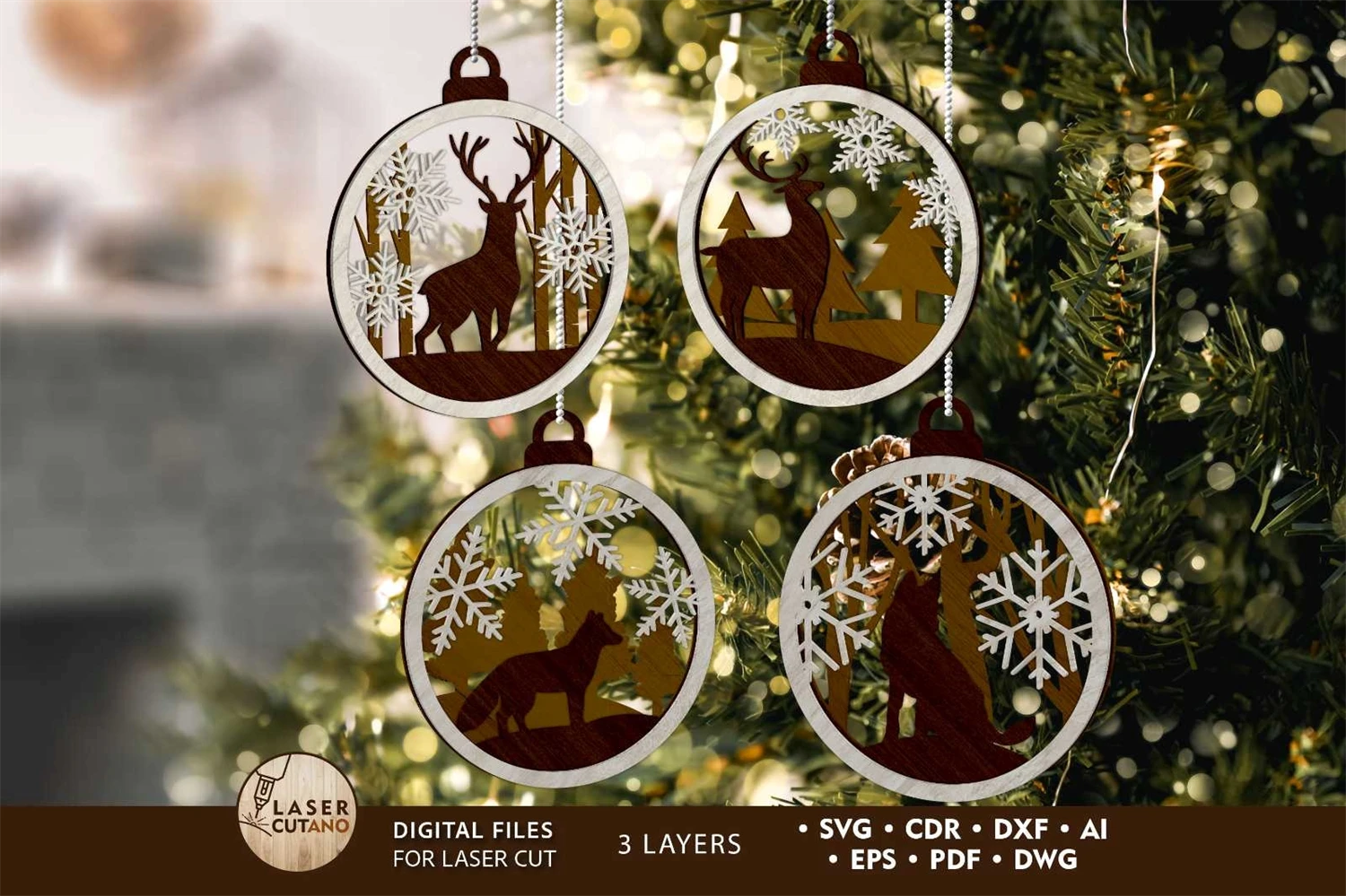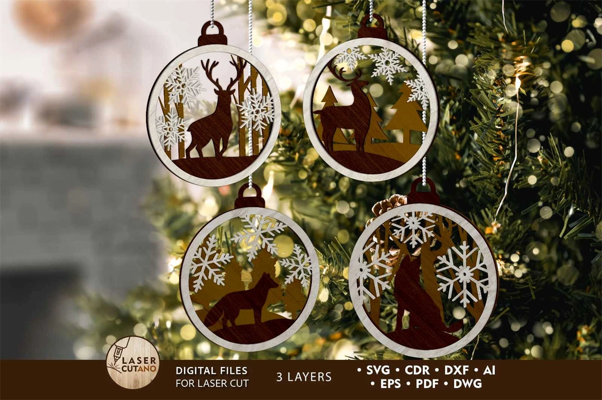 CHRISTMAS ANIMAL ORNAMENTS Laser Cut File Svg New Year Laser Cut Designs. It is multilayer layout is an creative design for your ideas!