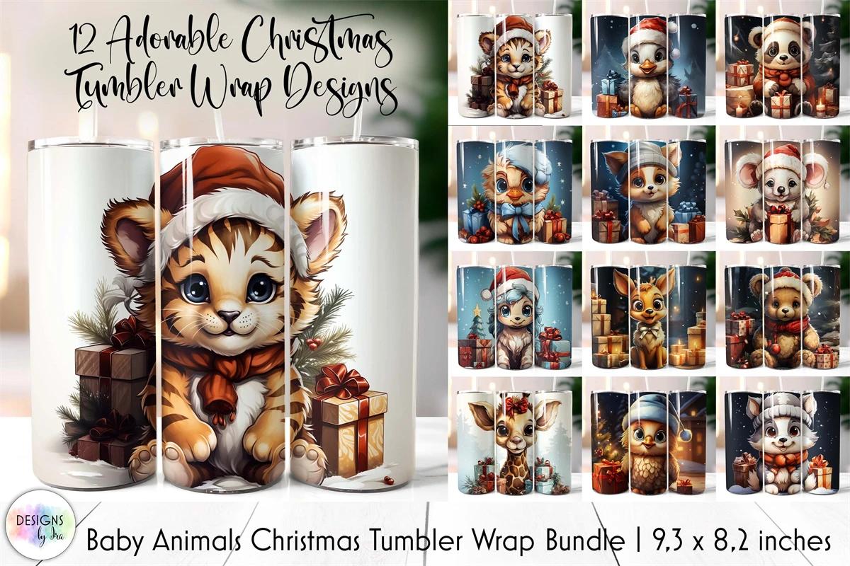 20 oz Tumbler wrap sublimation bundle with cute Christmas baby animals.
