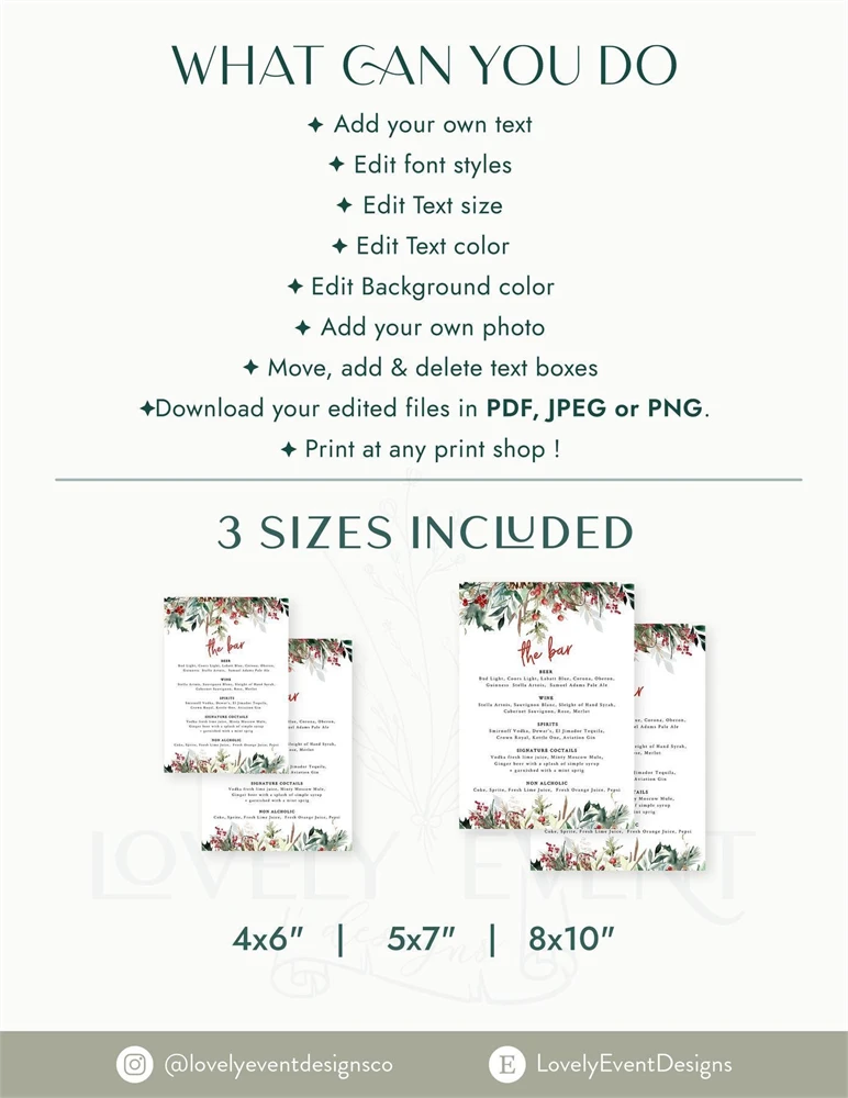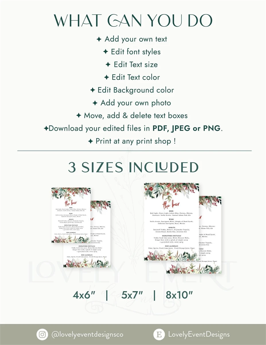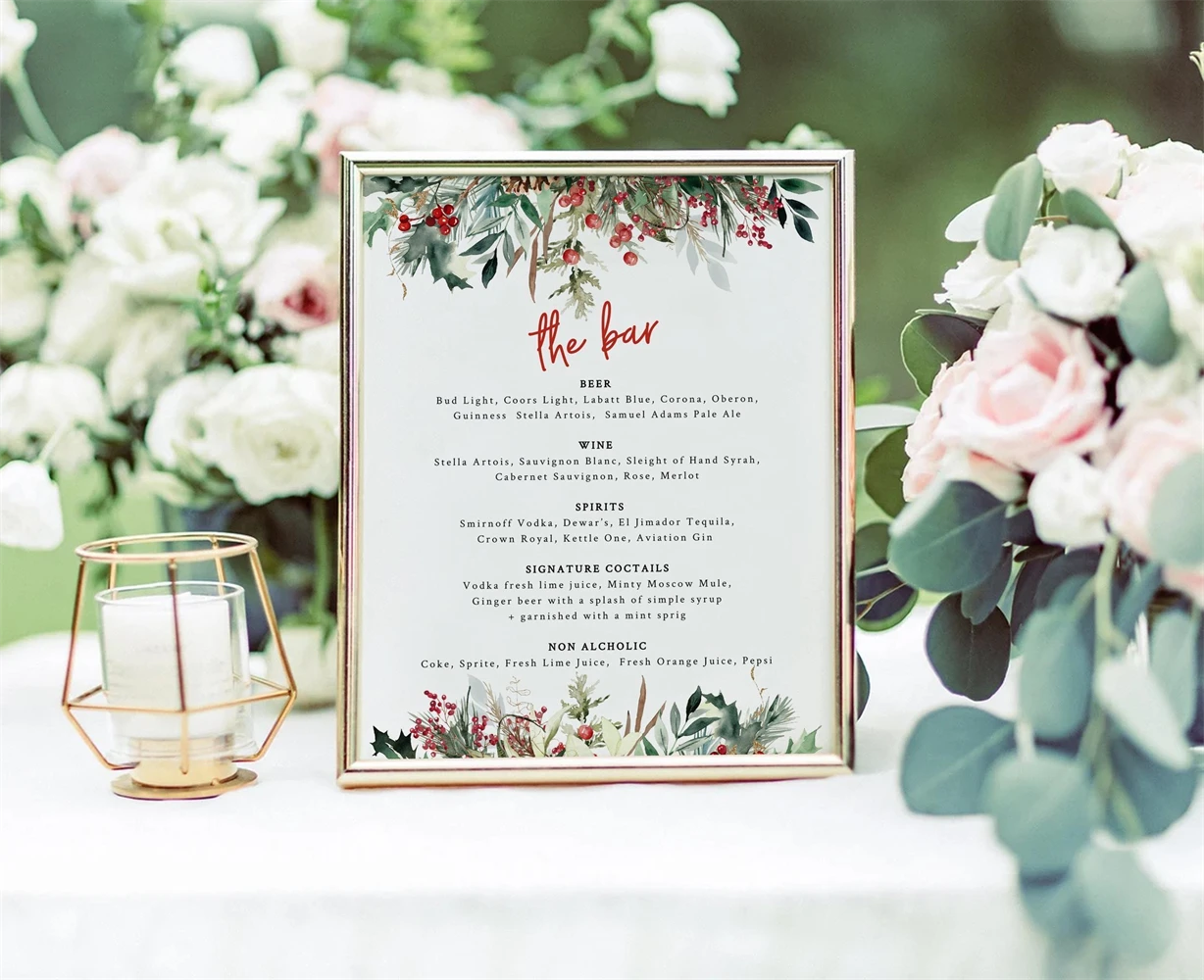 Christmas Bar Menu, Holiday Bar Sign, Christmas Drinks Sign,