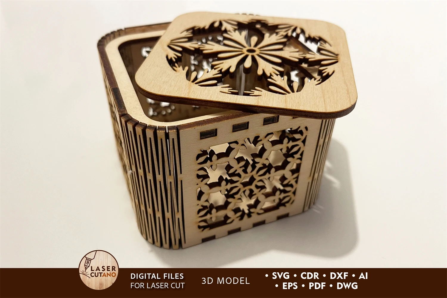 Christmas Laser Cut Box multilayer layout size (finished product): 3,5 x 3,5 x 2,5 in