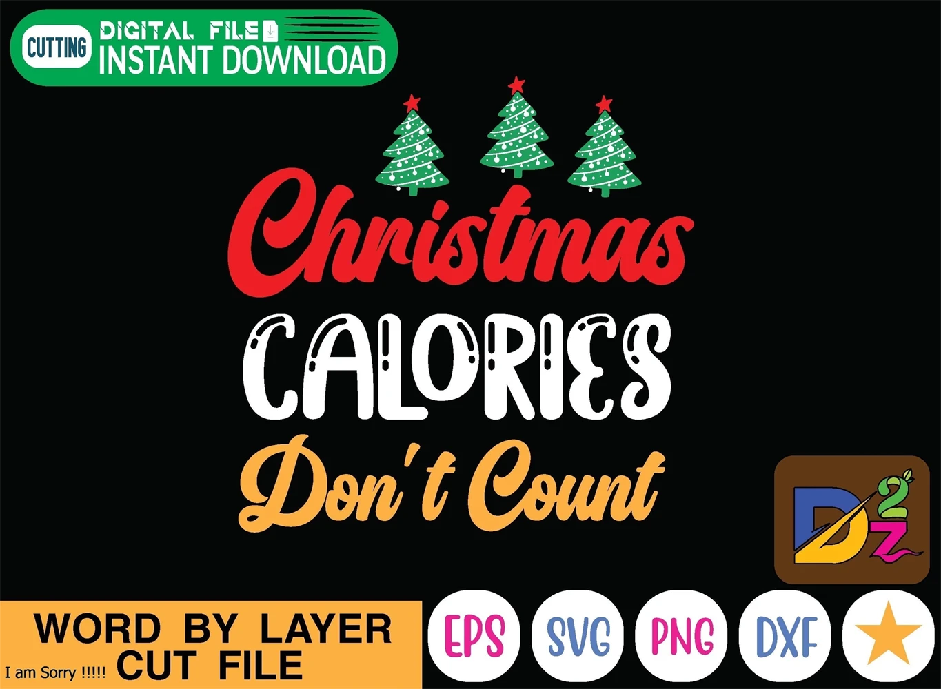Christmas Calories Don' t Count t shirt design This is an instant download cutting file compatible with many different cutting software/machines like cricut Silhouette