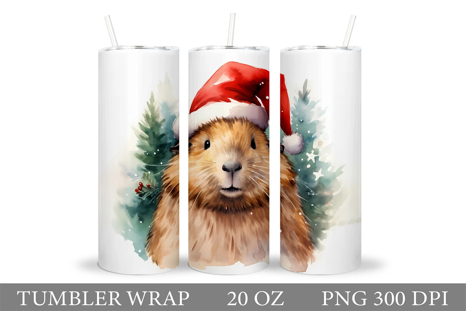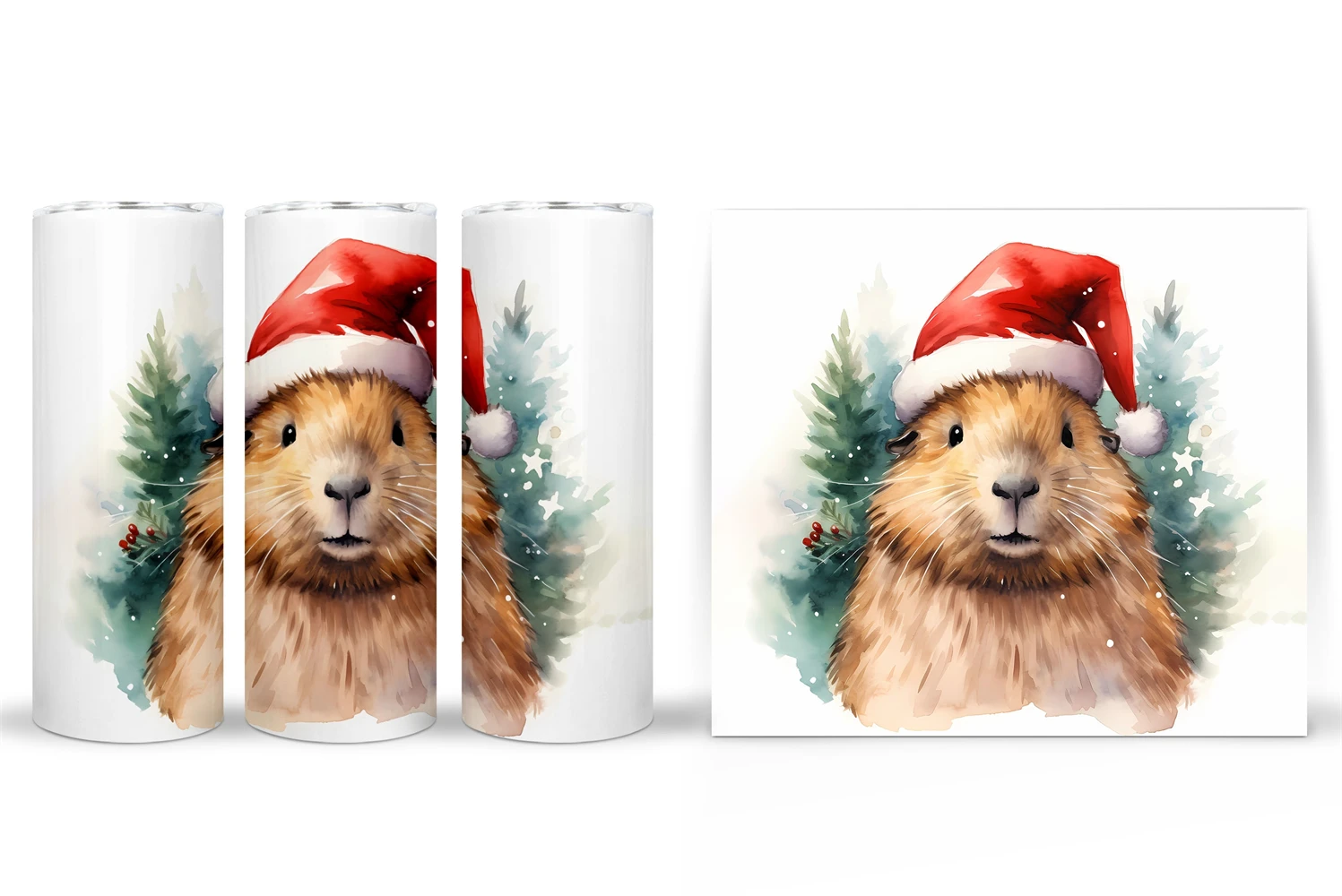 Christmas Capybara Tumbler Wrap. Winter Capybara Tumbler