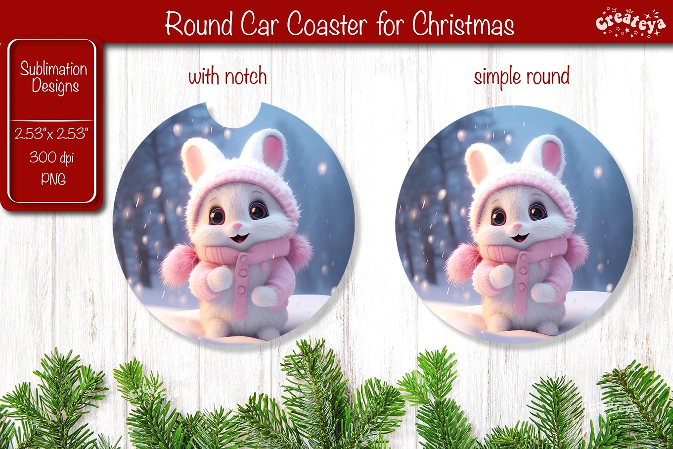 Christmas Car Coaster Sublimation coaster Christmas Bunny