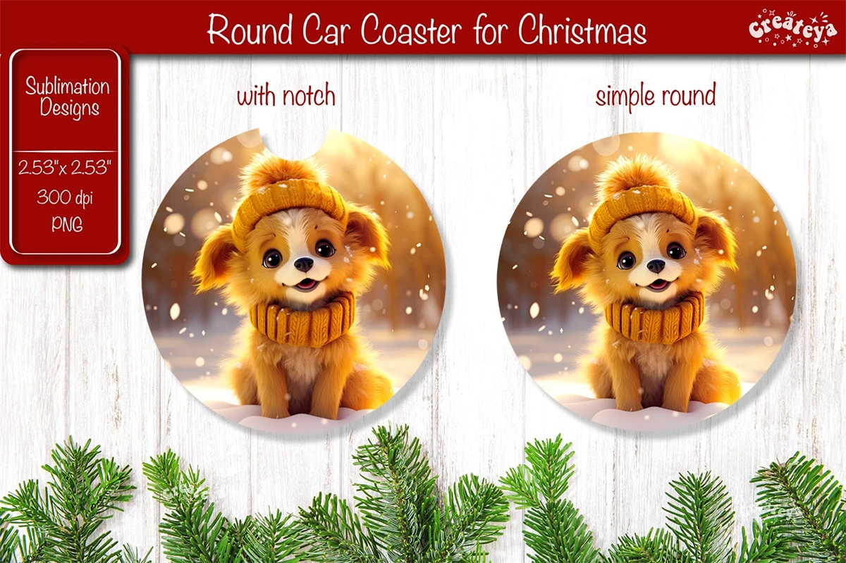 Car coaster Coaster Christmas Sublimation with cute Christmas Baby Animals PNG. This car coaster 2.53'' x 2,53'' is more than just a way to protect your table it brings a touch of snow-filled charm and a warm, fuzzy feeling to your home decor.