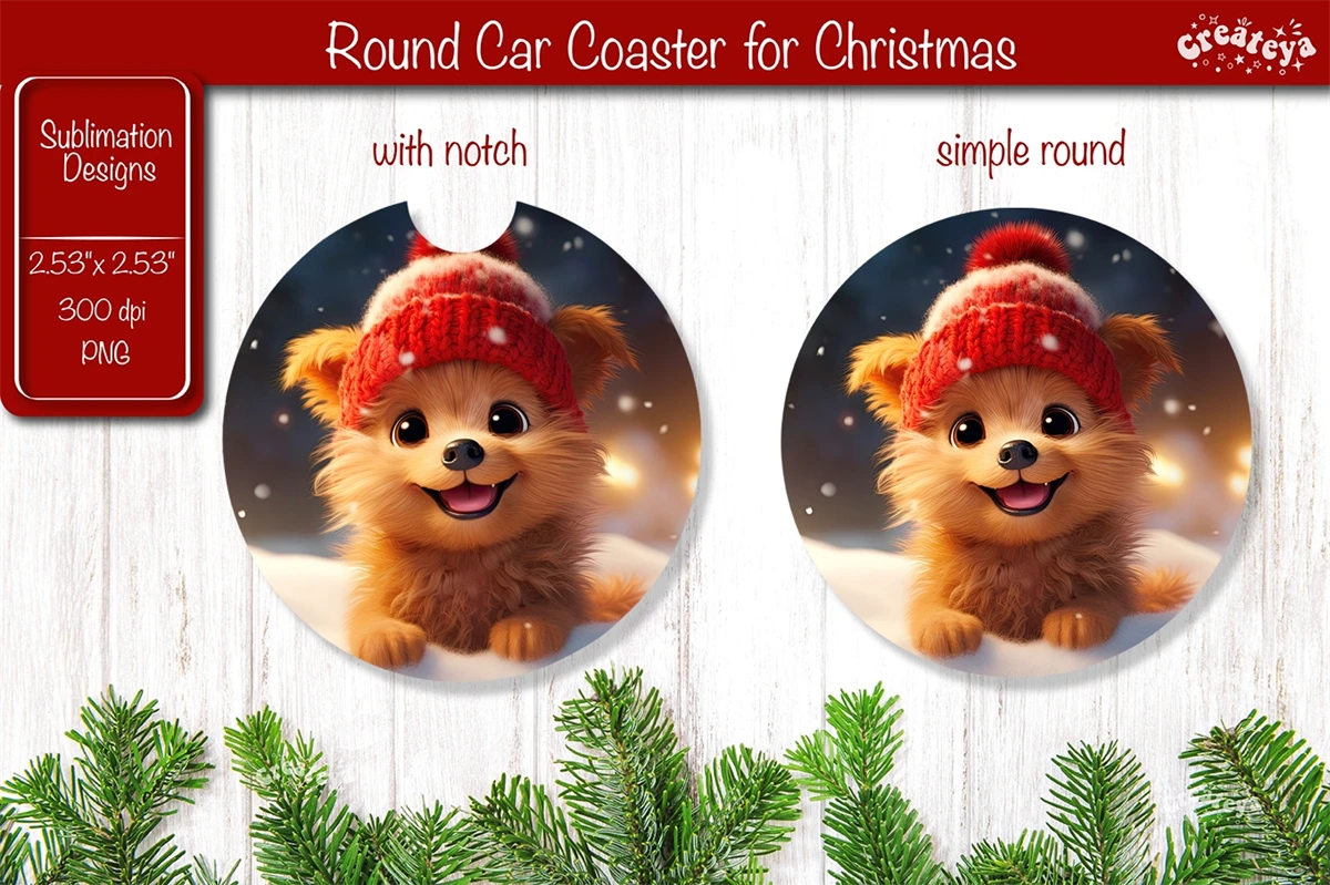 Christmas Car Coaster Sublimation coaster Christmas Puppy