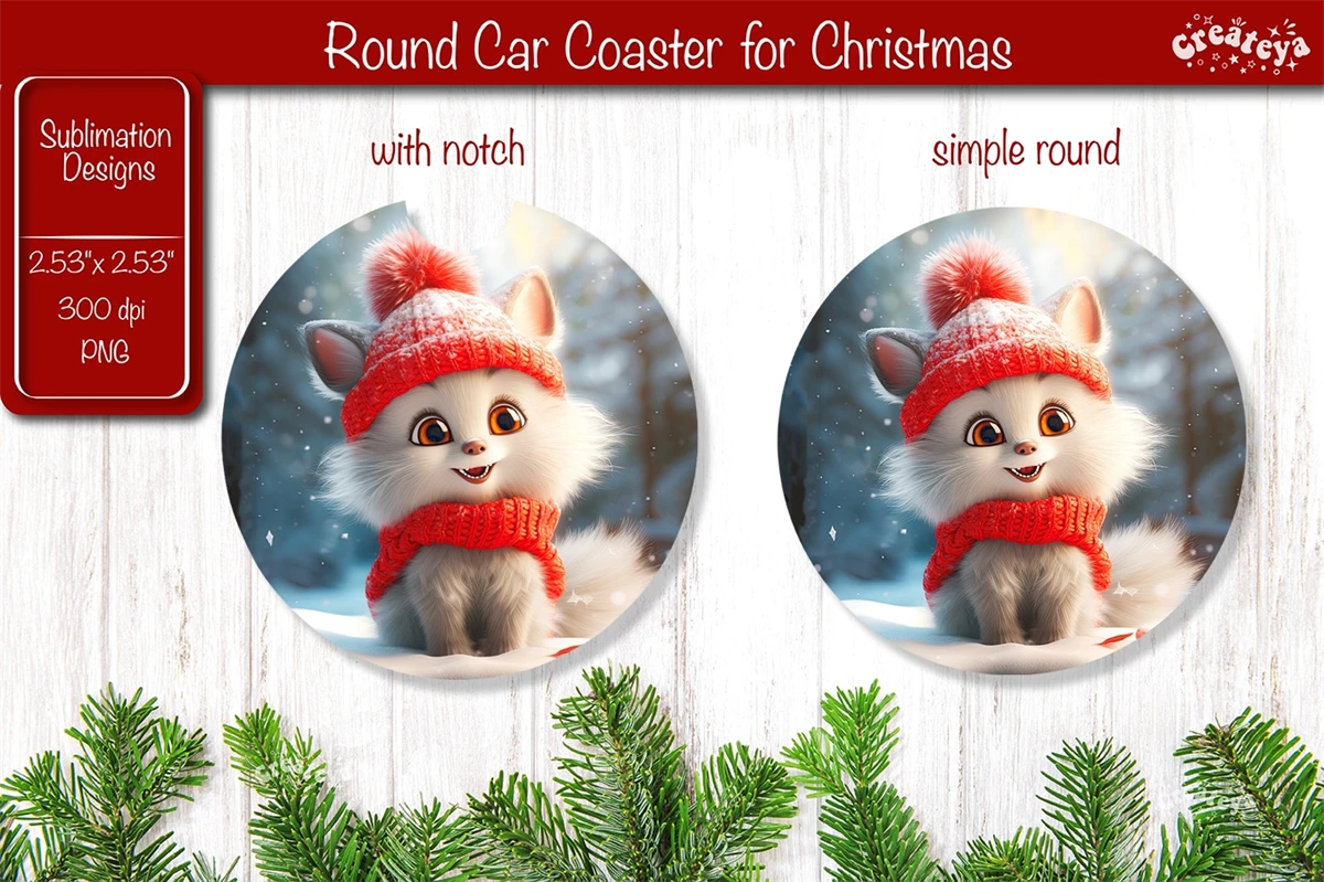 Car coaster Coaster Christmas Sublimation with cute Christmas Baby Animals PNG. This car coaster 2.53'' x 2,53'' is more than just a way to protect your table it brings a touch of snow-filled charm and a warm, fuzzy feeling to your home decor.
