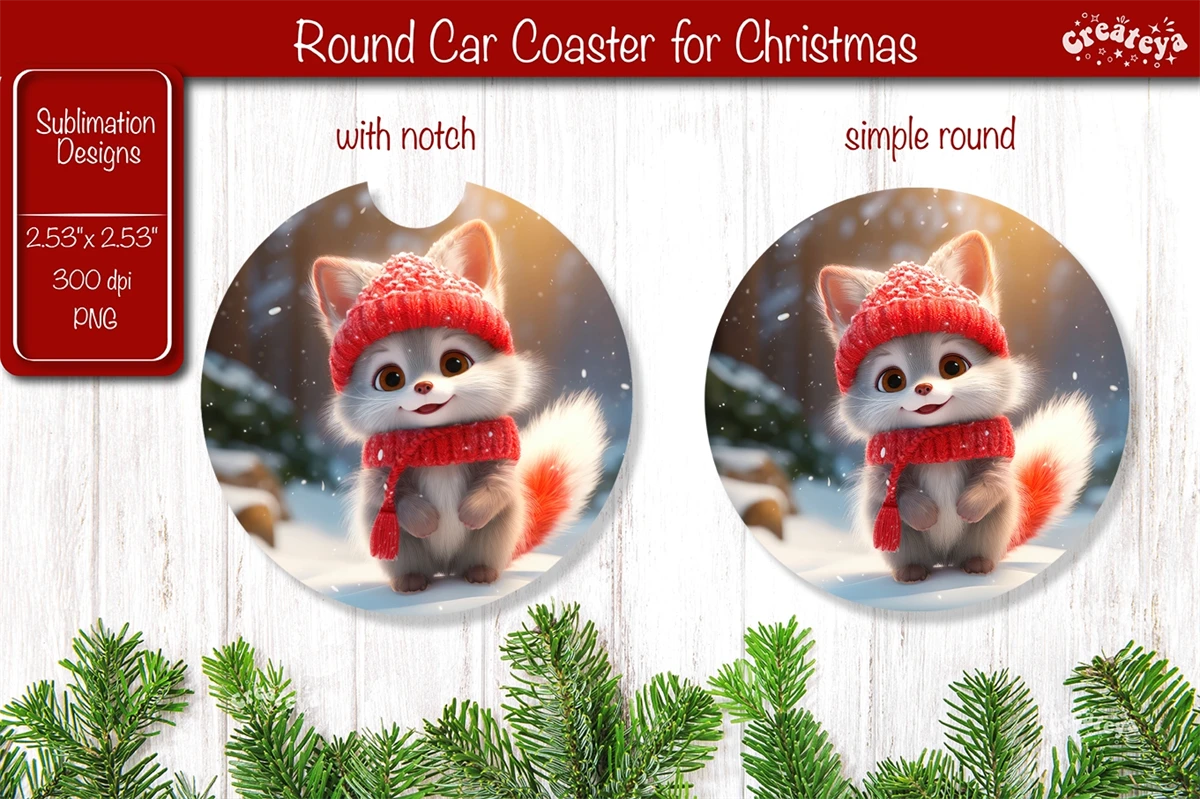 Car coaster Coaster Christmas Sublimation with cute Christmas Baby Animals PNG. This car coaster 2.53'' x 2,53'' is more than just a way to protect your table it brings a touch of snow-filled charm and a warm, fuzzy feeling to your home decor.