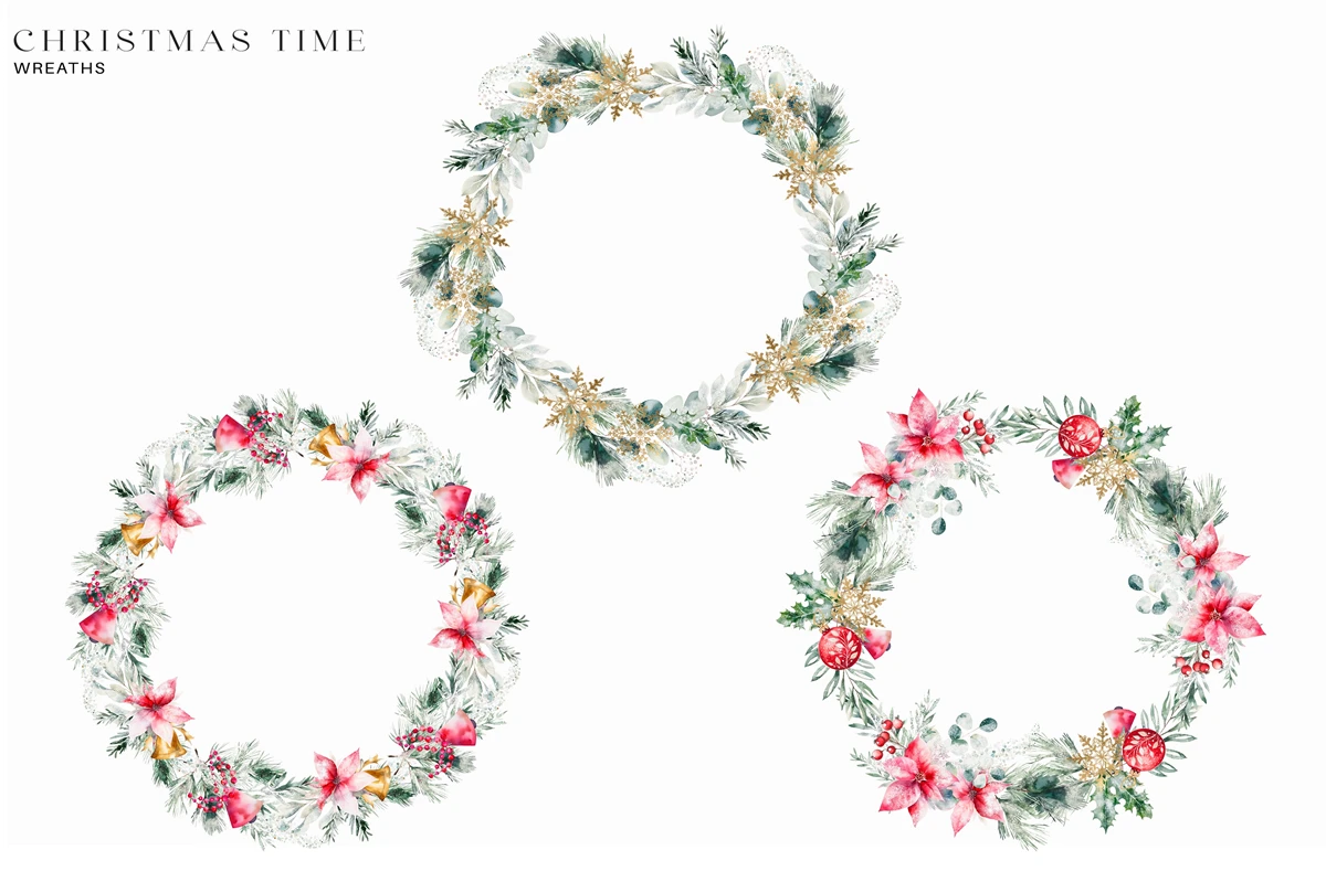 3 wreaths, size approx.: 5190 x 4917 px 17"x 16", and smaller