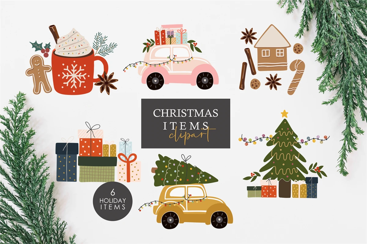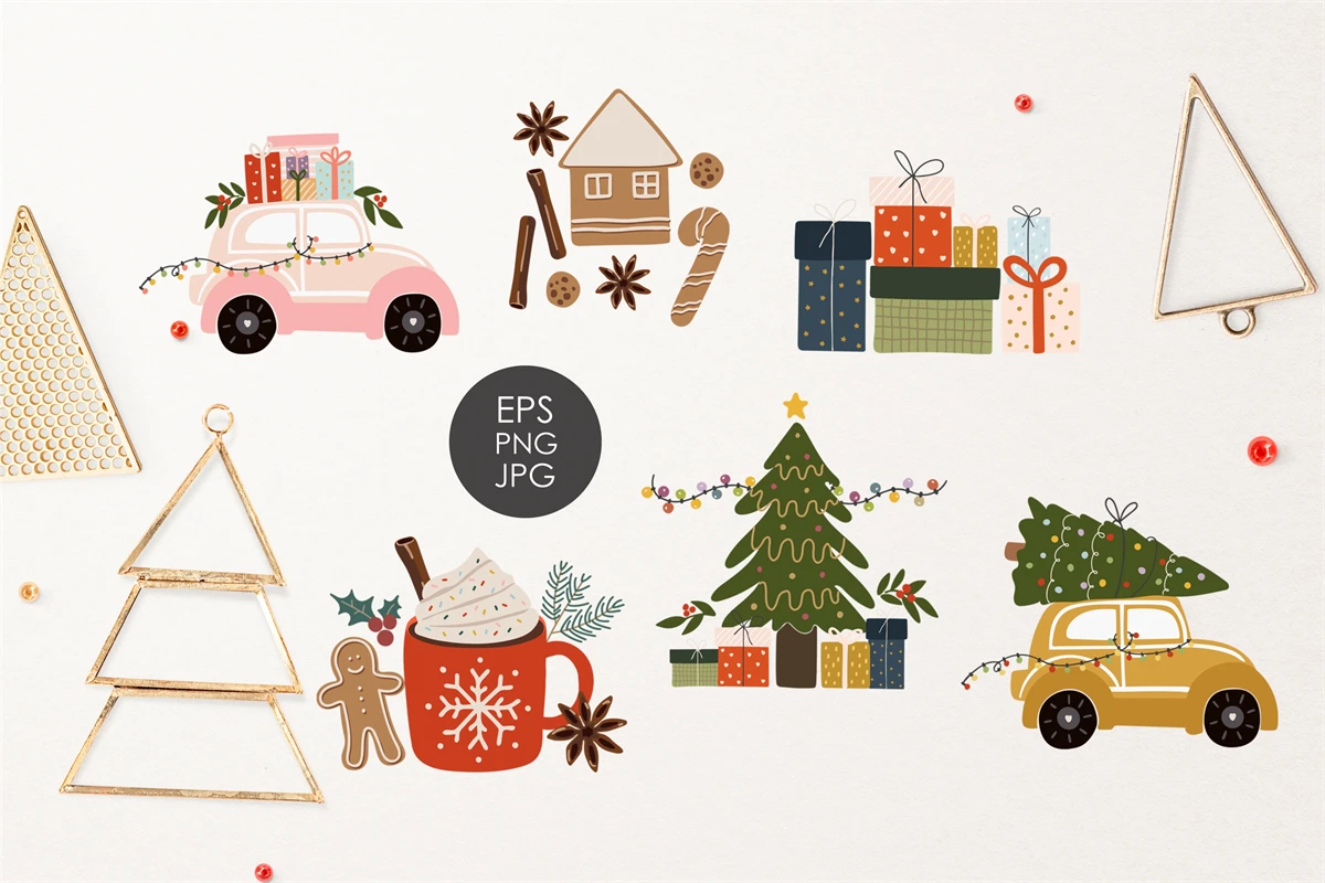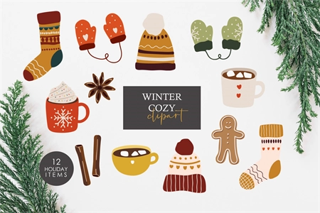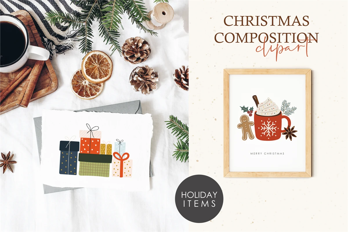Christmas clipart, Abstract winter composition clipart, Digital Holiday elements, New Year items PNG, Winter clipart, Cozy winter clipart