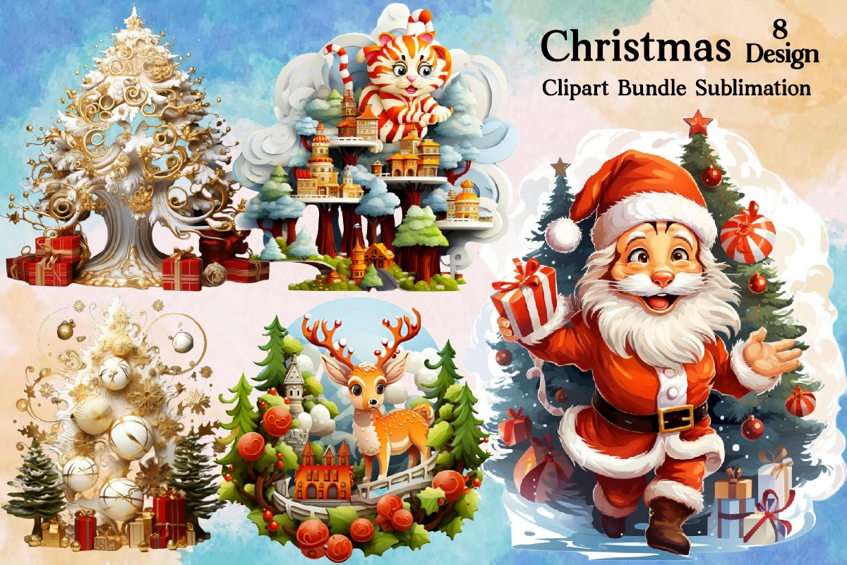 Watercolor Christmas Clipart PNG Bundle