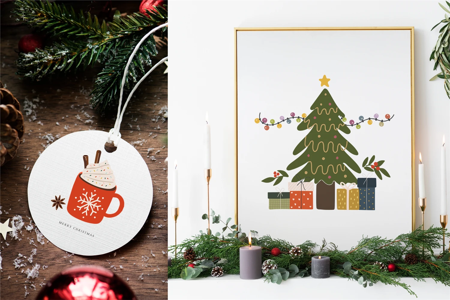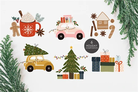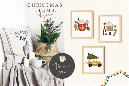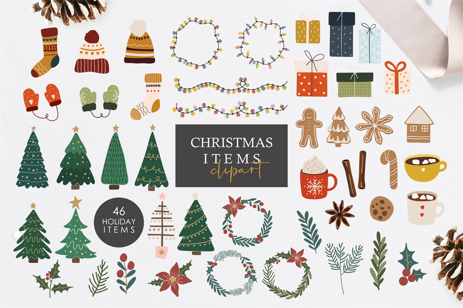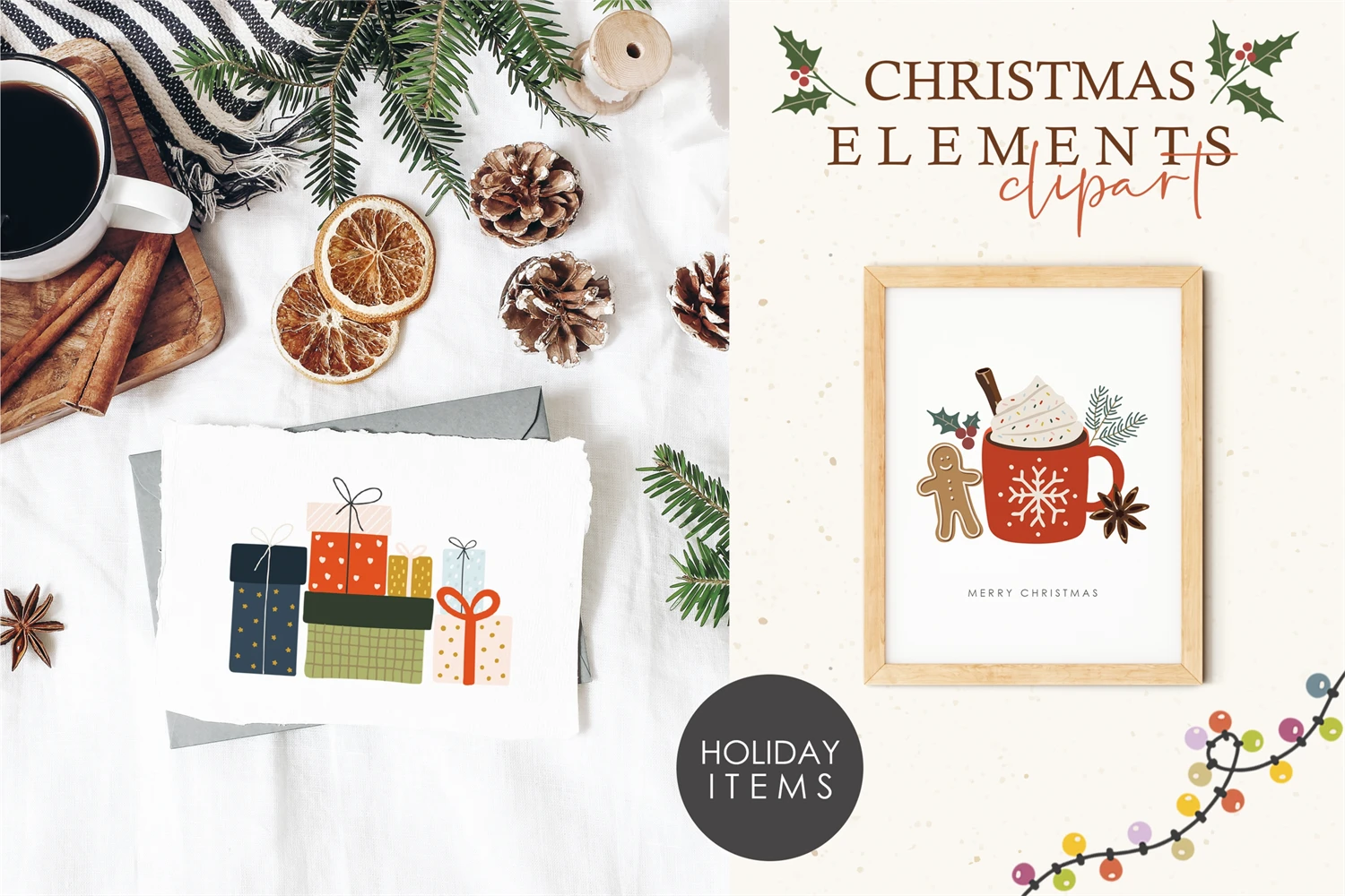 Christmas clipart, Abstract winter composition clipart, Digital Holiday elements, New Year items PNG, Winter clipart, Cozy winter clipart