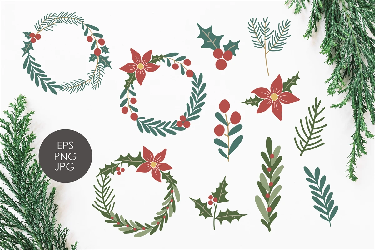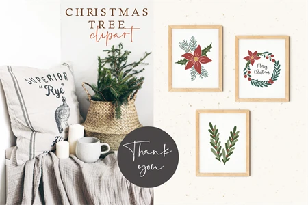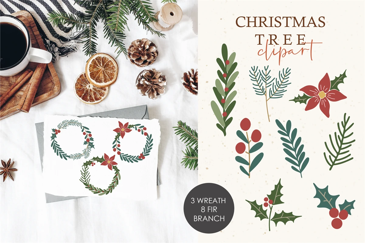 Christmas clipart, Abstract fir branch clipart, Digital Holiday elements, Christmas items PNG