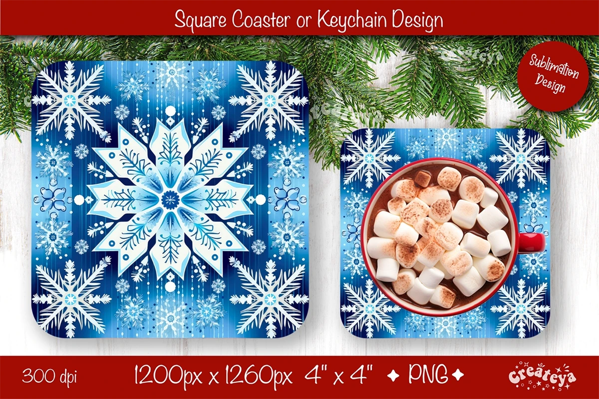 Square Coaster Christmas Coasters design with Christmas motif PNG. These standard square coasters 4'' x 4'' are more than just a way to protect your table they bring a touch of charm and a warm, fuzzy feeling to your home decor.