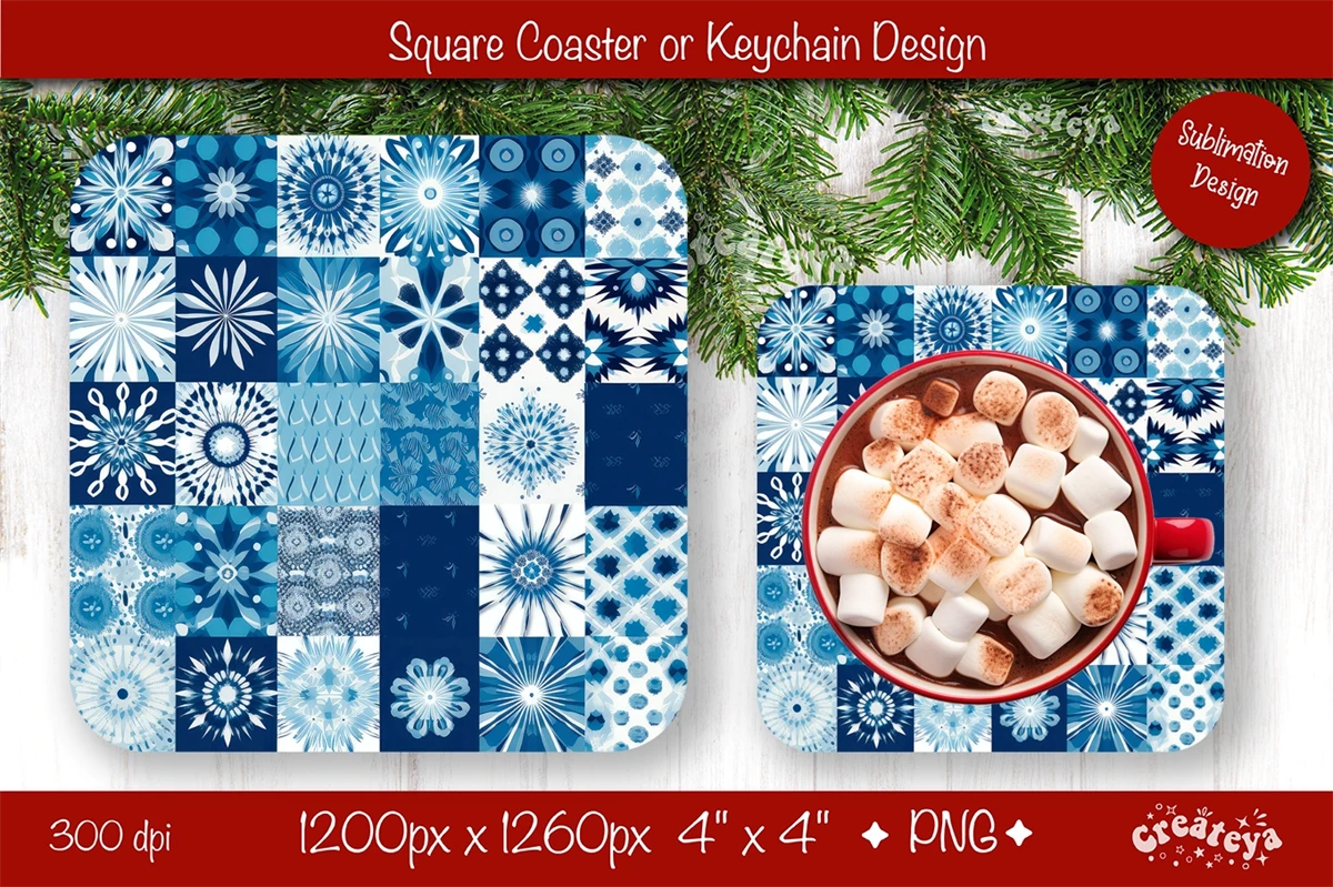 Square Coaster Christmas Coasters design with Christmas motif PNG. These standard square coasters 4'' x 4'' are more than just a way to protect your table they bring a touch of charm and a warm, fuzzy feeling to your home decor.