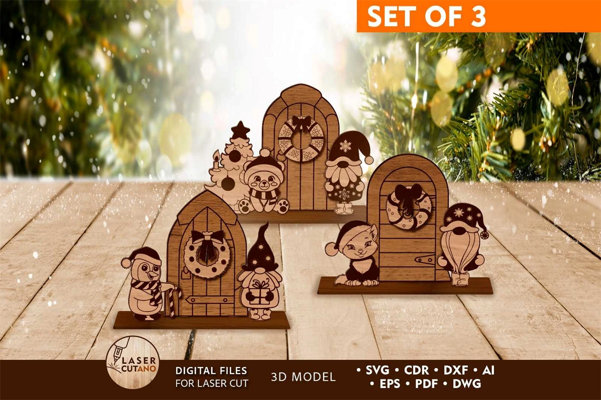CHRISTMAS DOORS Digital multilayer layout files are specially prepared for the laser cut, CNC router machine and other cutting machines.