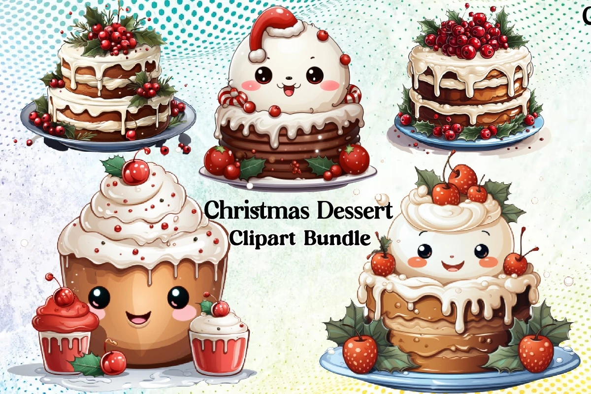 Watercolor Christmas Dessert Clipart PNG Bundle