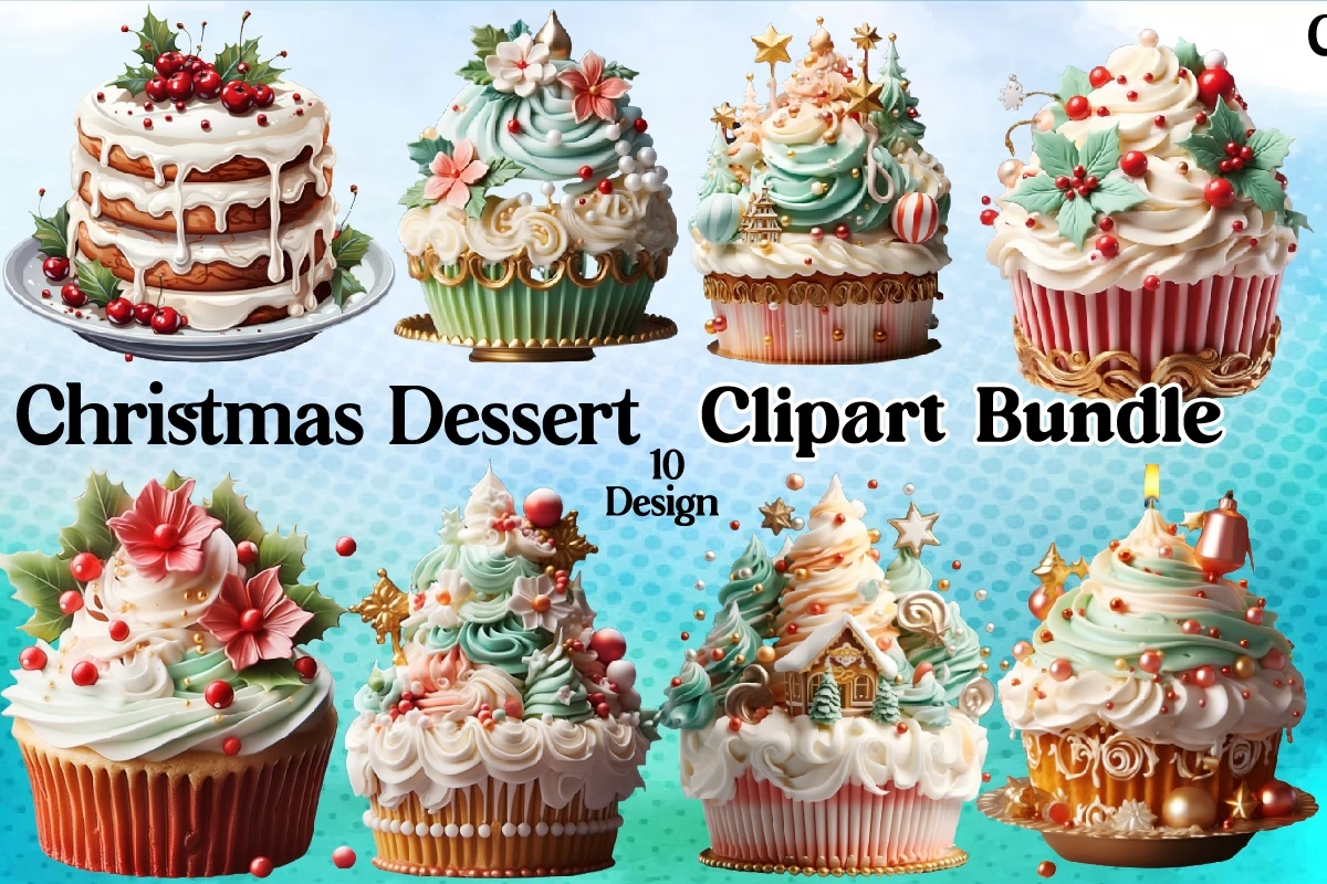 Watercolor Christmas Dessert Clipart PNG Bundle