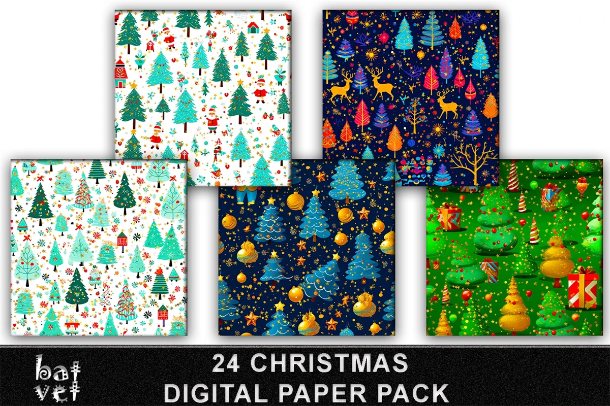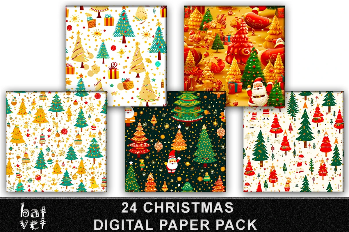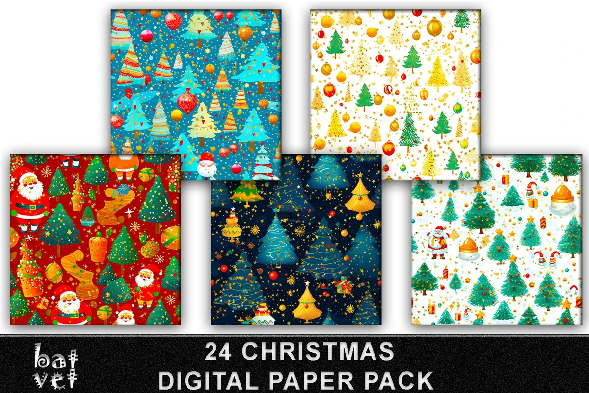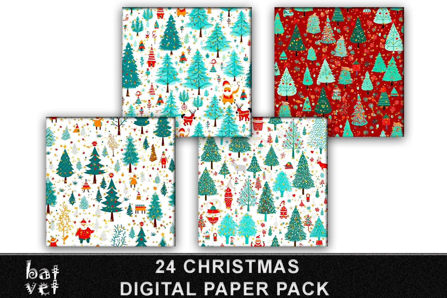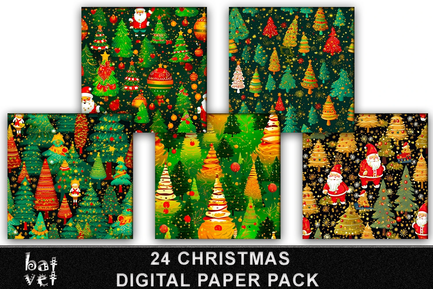 Christmas Digital Paper Pack / Xmas background Bundle / 24 JPG Files
