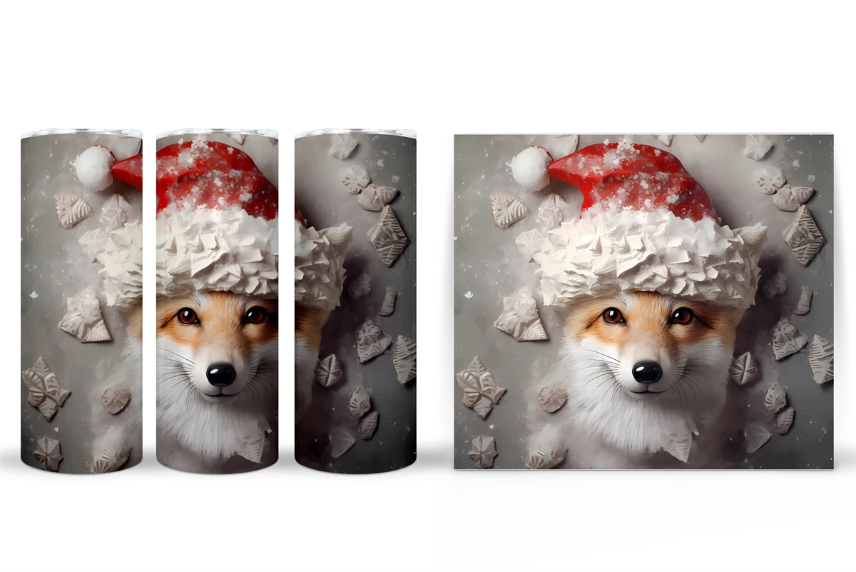 Christmas Fox Tumbler Wrap. Fox Tumbler Wrap Sublimation