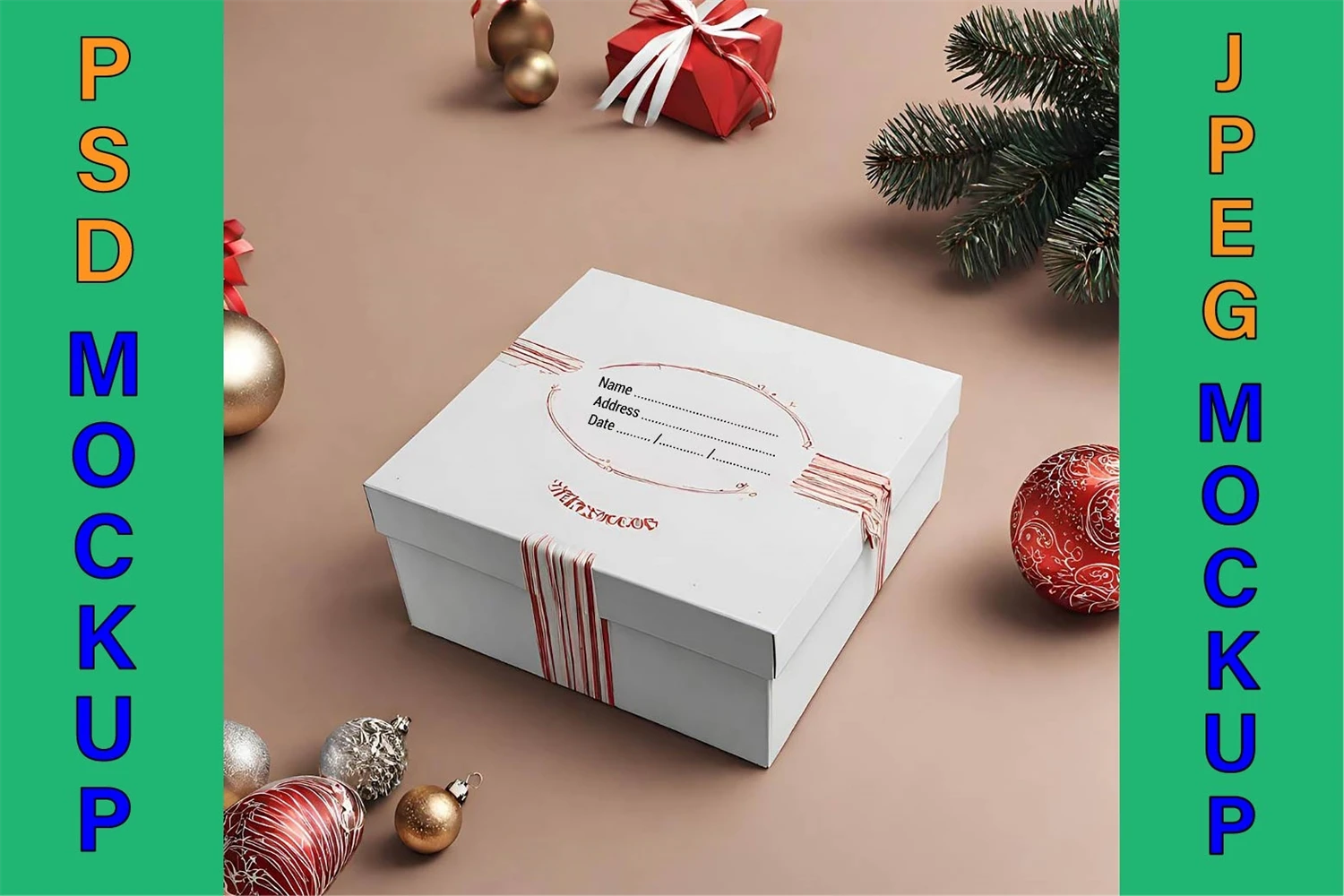 A Christmas gift box mockup is a realistic digital or physical representation of a Christmas gift box mockup. It serves as a template for showcasing custom designs, logos, or artwork on a Christmas gift tag mockup ,helping designers and businesses visualize how their ideas will look on the final product before production. Mockups can vary in complexity, from simple flat images to 3D models worn by virtual models or placed in real-life settings, offering a versatile tool for design and marketing purposes.
