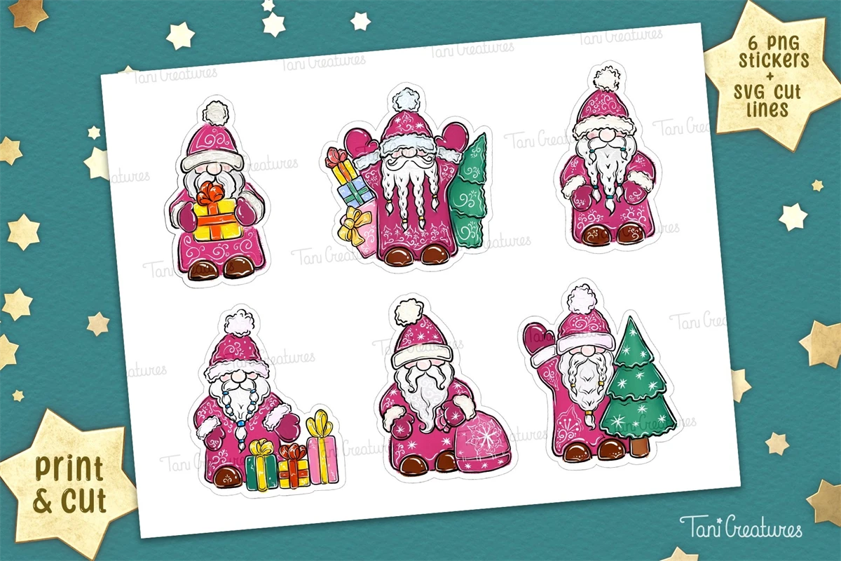 Print and cut! Cutest Santa Gnome Sticker Sheet!