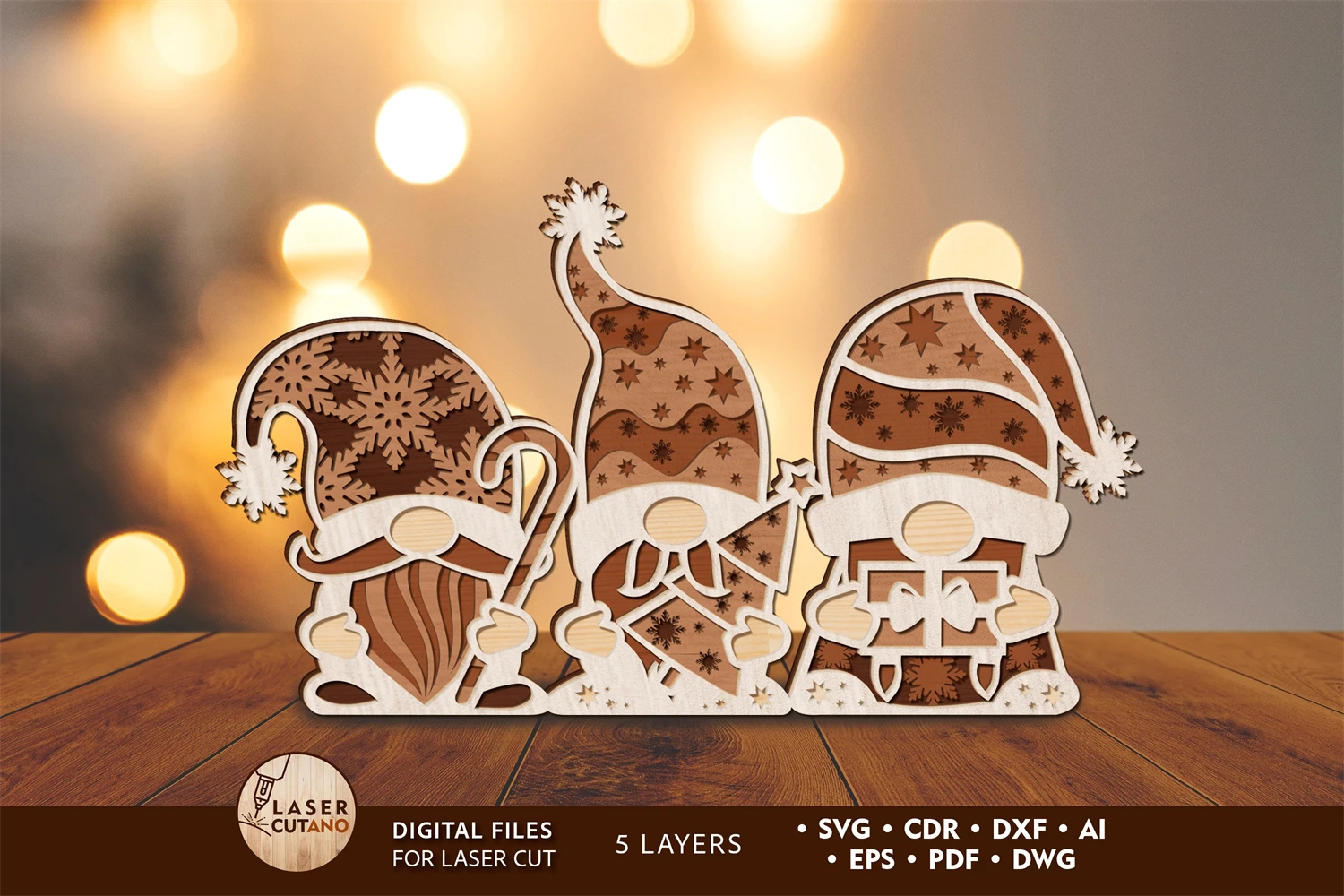 CHRISTMAS GNOMES Digital multilayer layout files are specially prepared for the laser cut, CNC router machine and other cutting machines.
