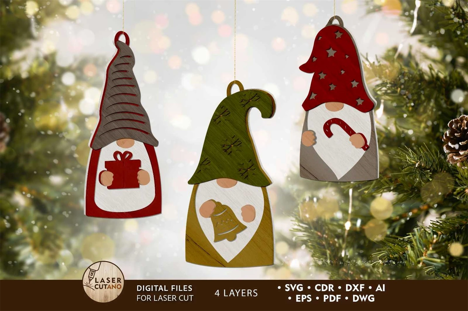 CHRISTMAS GNOMES ORNAMENTS Digital multilayer layout files are specially prepared for the laser cut, CNC router machine and other cutting machines. Layered Christmas Ornament is festive and eye-catching decorations that add a touch of elegance and charm to your holiday tree or home decor. This ornament is carefully crafted with multiple layers of materials, each contributing to the overall design and visual appeal.