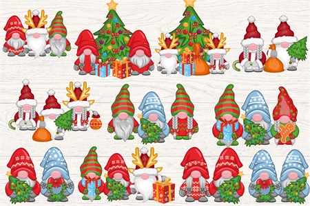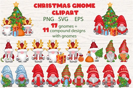 Christmas Gnomes With Gifts Sublimation Design. SVG PNG EPS