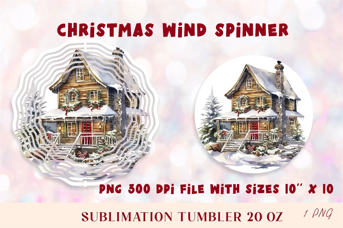Christmas Houses Wind Spinner Sublimation, Winter Spinner