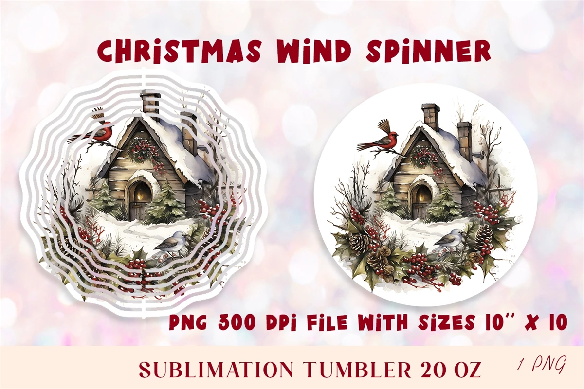 For all Christmas lovers! It was a lot of fun creating this cute winter house spinner sublimation! Christmas vintage clipart. Colorful, festive and fun!